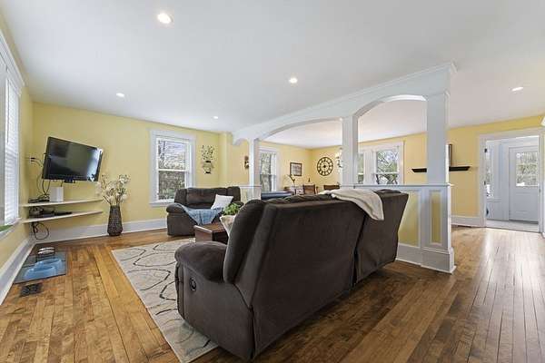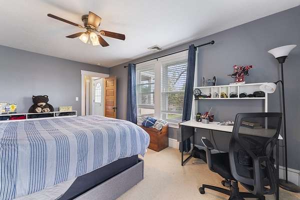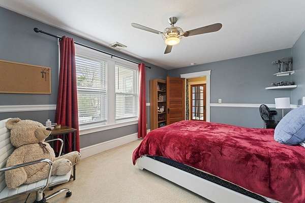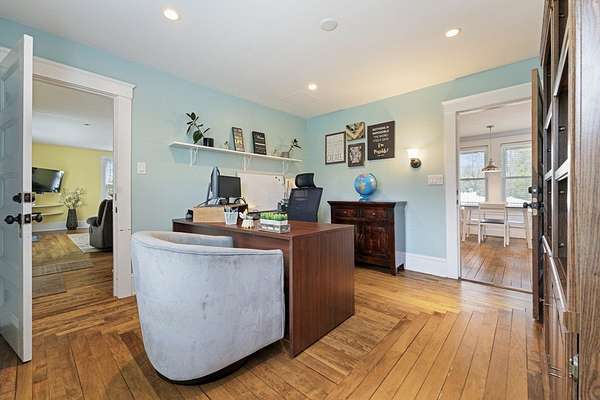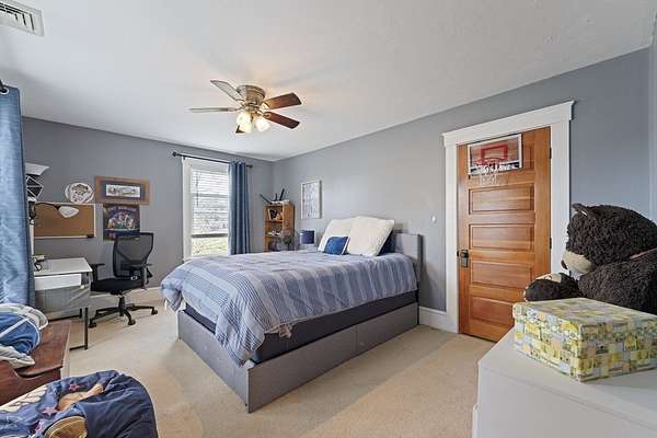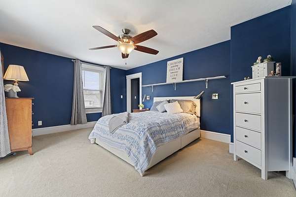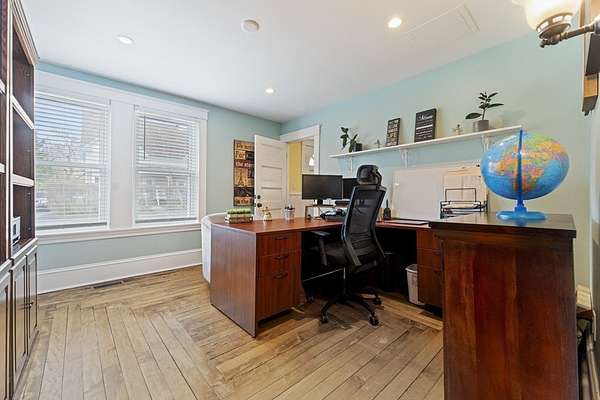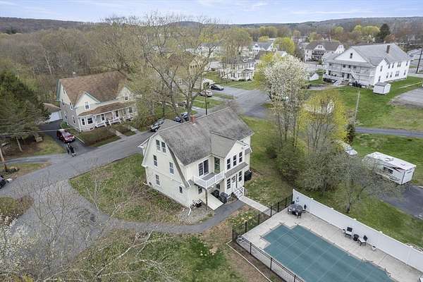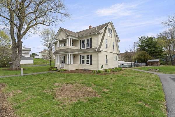 Welcome to this warm and inviting Colonial-style home in Grafton, where timeless charm meets everyday comfort. The sun-filled main level offers an open-concept living, dining, and updated kitchen with gleaming hardwood floors and stainless steel appliances, along with a convenient home office and bath. Upstairs, the spacious master bedroom features wall-to-wall carpeting, a walk-in closet, ceiling fan, and private balcony, complemented by two additional bedrooms and a full bath. The third floor provides two versatile rooms perfect for guests, work, or play, while the basement adds bonus space with an additional bathroom. Step outside to enjoy the deck overlooking a generous backyard with an in-ground pool, patio, and storage shed-ideal for relaxing or entertaining. A truly spacious and flexible home ready for its next chapter.