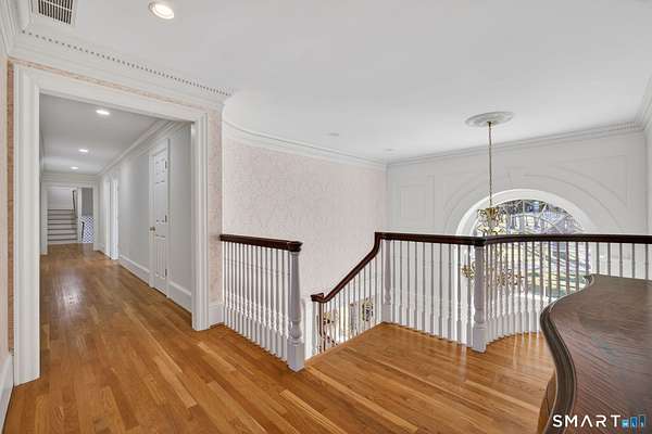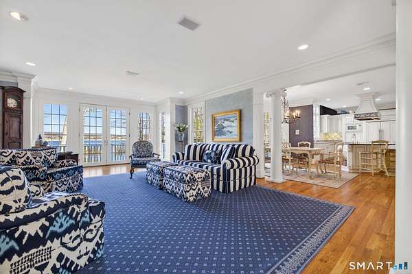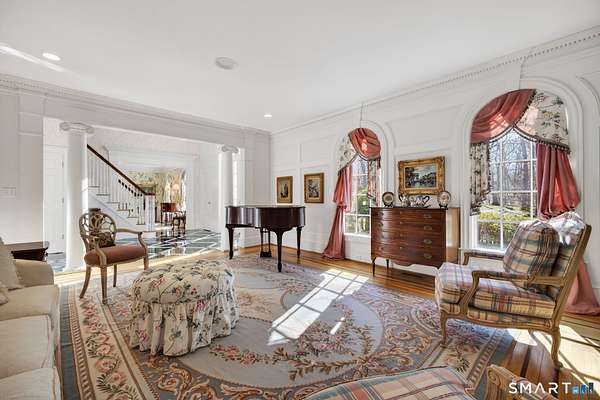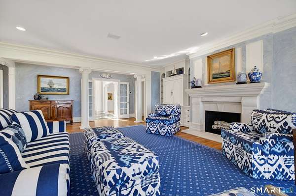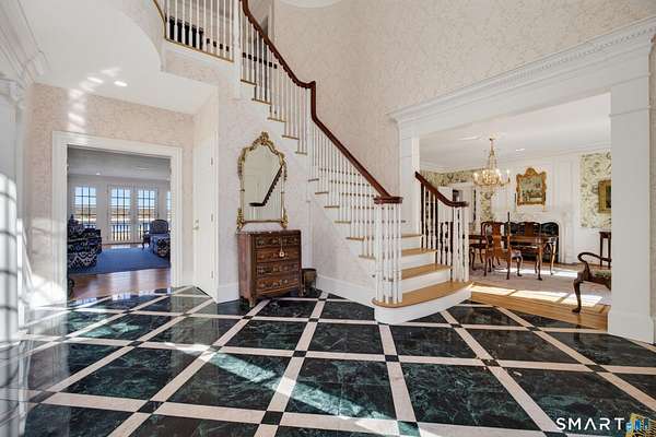 Riverside Elegance Meets Neoclassical Grandeur: Experience the pinnacle of waterfront living in this breathtaking Grecian Colonial estate, perfectly situated on 3.43 pristine acres overlooking the majestic Connecticut River. Spanning an impressive 5,739 square feet, this residence combines timeless architectural sophistication with the serene beauty of nature. Leave the world behind as you travel up the winding driveway that sets this home back from the road for ultimate privacy. The exterior is a master class in curb appeal, featuring a three-car garage and a porte cochere, all framed by lush landscaping and your own private pond. Step through the front door into a soaring cathedral ceiling foyer. As the heart of the home, this space is open to the floor above and finished with exquisite marble flooring, offering a regal welcome to guests. The floor plan is defined by wide-open spaces that flow seamlessly from one room to the next, making it as ideal for grand-scale entertaining as it is for quiet relaxation. With six spacious bedrooms, there is ample room for family, guests, or a dedicated home office suite. Embrace the river breeze from your choice of outdoor vantage points: This isn't just a home; it's a lifestyle. Whether you are watching the seasons change over the Connecticut River or enjoying the tranquil reflections on your private pond, this estate offers a rare blend of scale, light, and location.