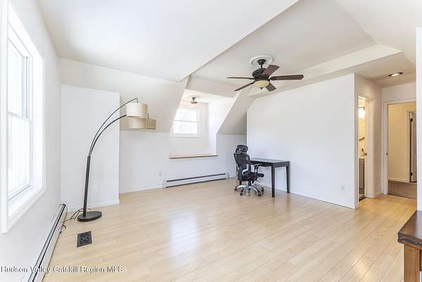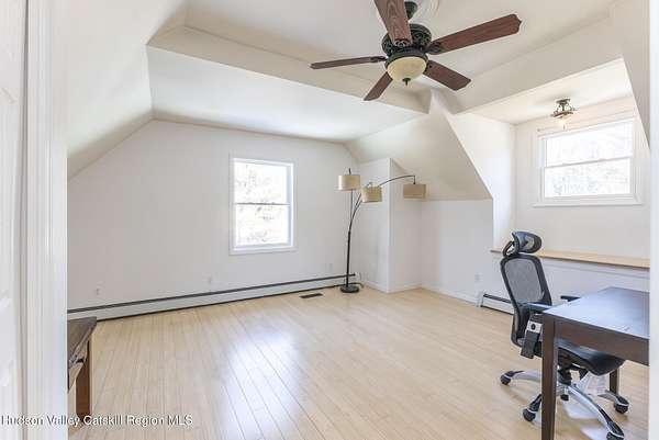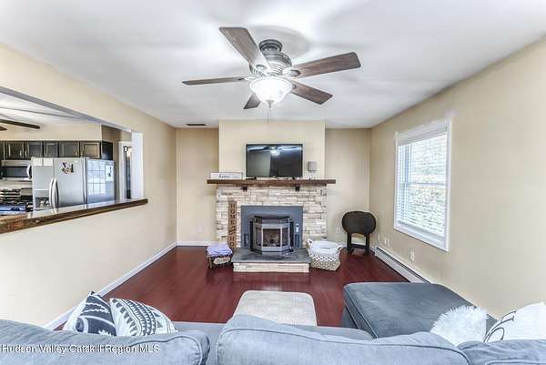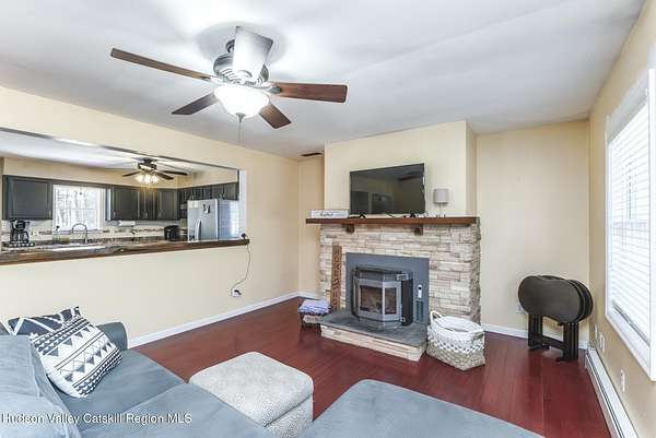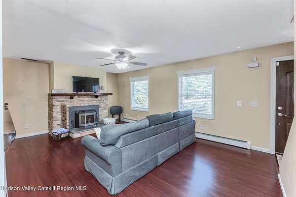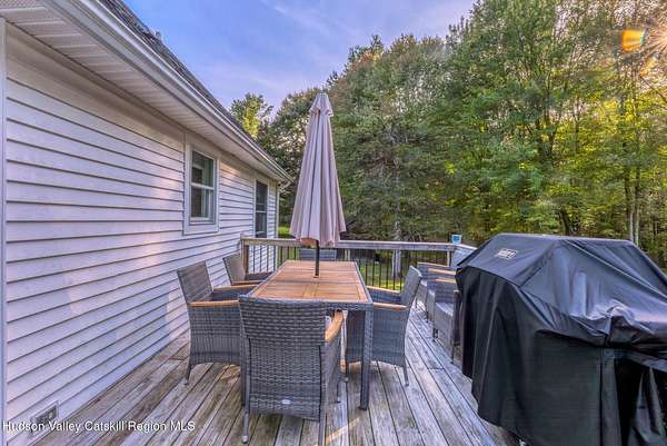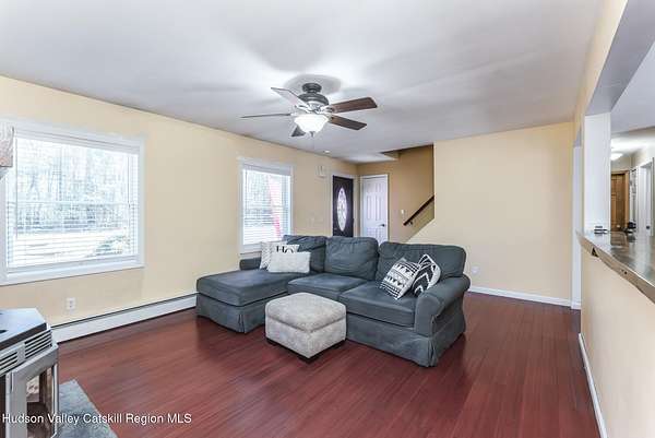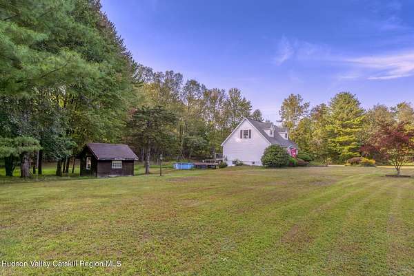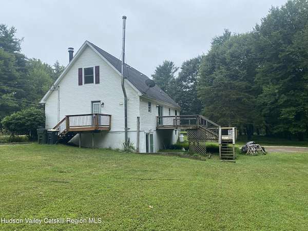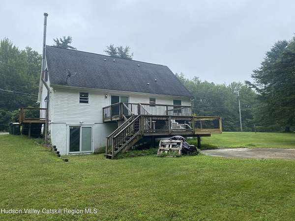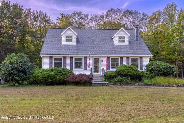 Charming Four Bedroom 2.5 bath Cape on 2 Acres, located on a well maintained dead end road. As you enter the home , open floor plan between living room , dining room, and kitchen leading to a fantastic deck overlooking a Phenomenal backyard. The main floor has a Primary bedroom with a full bath and a second bedroom. Second Level boasts a large bedroom with a half bath. This floor also includes an additional full bath and bedroom. Lower Level is finished with so much additional space for your creativity to take hold . Leads to to expansive backyard for entertainment and enjoyment. So close to Cideries Wineries, farmstands, restaurants and more.This home also includes all new Pella windows and a water filtration system. Please come take a look.