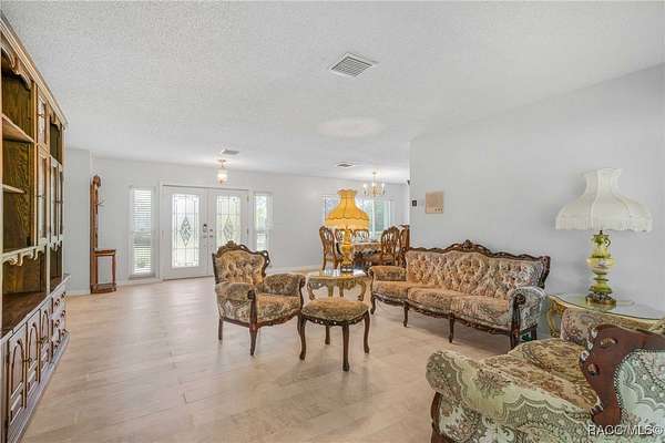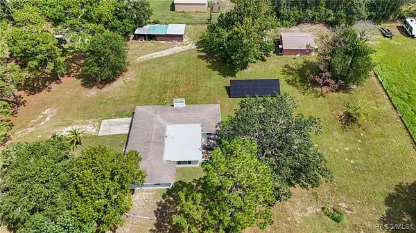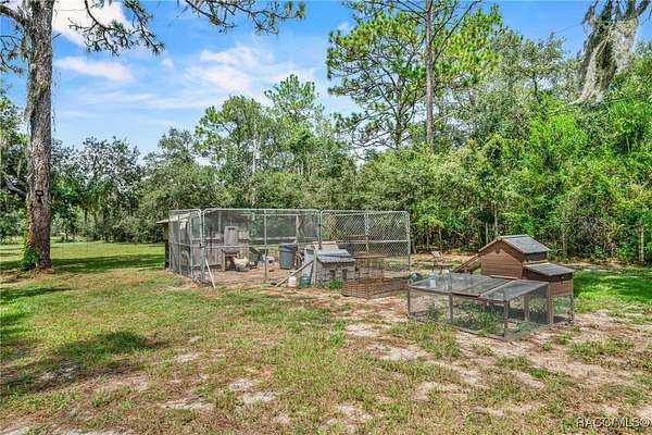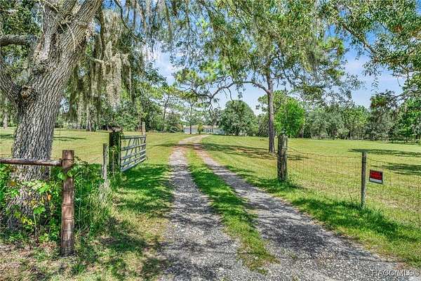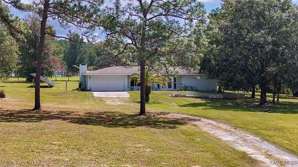 One of the beautiful aspects of Citrus County is that there is still room to stretch out and this hilltop location in the heart of Citrus County is the perfect spot! Property consists of 4.5 acres plus two single family residences located just north of the Withlacoochee State Forest that has miles of trails and camping areas. Practically at the center of everything with convenient access to shopping, restaurants and more. And the boater will enjoy being within 10 miles in either direction to the Gulf or the Tsala Apopka chain of Lakes. Major improvements have been made including 13 new windows in 2022, replaced garage door in 2018 and the roof on the main house was done in 2015/2024 and the guest house in 2019 so there won't be any problem obtaining insurance coverage. New 4-ton,16 Seer A/C and Heat system and all new ducts installed 2023. An extensive interior remodel included leveling off the step-down living space, installing new tile floors in main living area and luxury vinyl plank in the bedrooms, remodeling the kitchen and adding new appliances. A wood burning fireplace in the family room is a creature's comfort not needed that often but sure is nice when it is! A ground level solar system provides power to the house with substantial savings on energy costs even considering the lease payment. The guest house is a wonderful one-bedroom one-bath home with efficient kitchen and inside laundry. You can use it as vacation rental or reserve it for loved ones. And if you love chickens, you can raise them here! Outbuilding with covered stalls and two separate sheds will keep all your farm equipment out of the weather. If the world is your oyster, then Florida is your sandbar, and Salisbury Terrace is the center of your Universe!