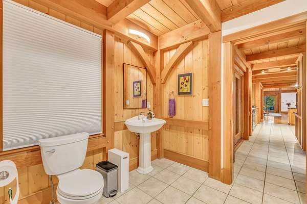 Sebec Lake's Premier Luxury Listing - 11 Salmon Road, Dover-Foxcroft This custom Timberpeg, post-and-beam home is one of Sebec Lake's most distinguished properties, offering 450 feet of private waterfront, 4.72 acres, and 8,136 sq. ft. of beautifully finished living space. Despite its impressive scale, the rich woodwork, red oak flooring, and natural textures throughout create a warm, inviting atmosphere that feels truly like home. The main level showcases a dramatic great room with exposed beams and a floor-to-ceiling stone dual fireplace, flowing into an open family room and a well-appointed kitchen with granite countertops, Sub-Zero refrigerator, KitchenAid appliances, beverage fridge, and a spacious butler's pantry. A dedicated dining area with a custom cherry bar adds to the home's charm. The first-floor primary suite includes private deck access overlooking the lake, dual closets, and a large bath. A home theater, mudroom, laundry room, and an additional first-floor bedroom complete this level. Upstairs, two oversized bedrooms with walk-in closets, a full bath, and a flexible loft space offer comfortable living for family or guests. An attached in-law suite provides its own bedroom, living/kitchen area, and full bathaEUR"ideal for multi-generational use. Additional features include a two-room soundproofed music studio, walk-out/drive-out basement with game area and workshop space, and six garage bays. Recent upgrades include seven new heat pumps, a full-house Generac generator, whole-house sound wiring, Ethernet throughout, updated exterior finishes, and new lakeside Trex decks with Cable Bullet railing. A newly built 32'x48' outbuilding (2024) with separate electrical service adds exceptional storage or workspace. This is a rare opportunity to own a lakefront home that combines craftsmanship, character, and modern amenities at a level seldom available on Sebec Lake.