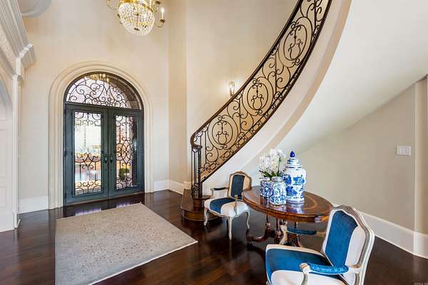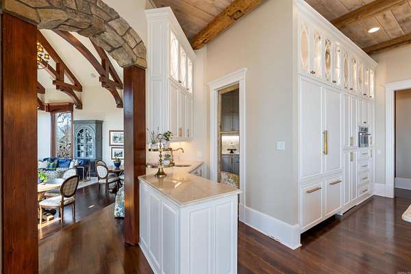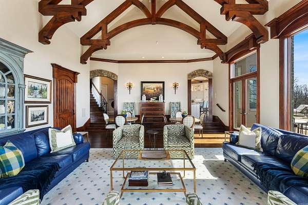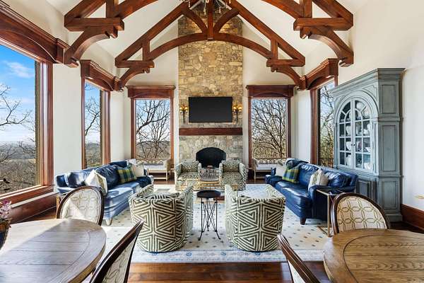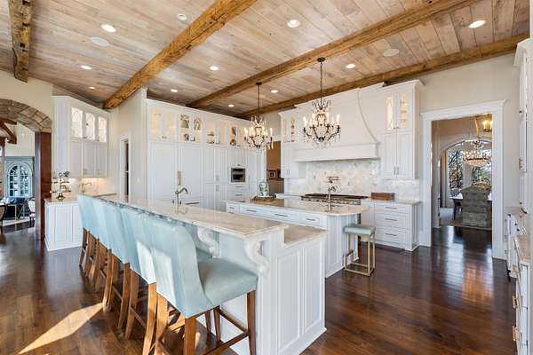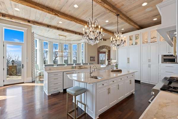 From the moment you arrive, this world-class estate offers a private retreat, where nature and sweeping views create a sense of tranquility. Step through the custom iron front door into a striking foyer where a floating staircase, handcrafted iron railings & rich walnut floors set the tone for the craftsmanship found throughout the home. The kitchen is designed to bring people together, with Schoenbeck chandeliers, quartzite countertops, marble backsplashes & reclaimed wood beams creating a warm, elevated atmosphere. A Thermador double refrigerator & freezer, 60-inch range with double ovens & generous prep space make hosting effortless. A butler's pantry, working pantry & three distinct dining areas add both function and flexibility. The primary suite is a peaceful escape, inspired by St. Mark's Square in Venice. Heated marble floors, a steam shower, refined lighting & a custom closet with an island create a spa-like experience at home. Throughout the estate, thoughtful surprises await, including secret rooms, tunnel slides, a second kitchen, a second laundry, and two three-car garages. Every detail reflects exceptional craftsmanship. This home as livable as it is unforgettable.