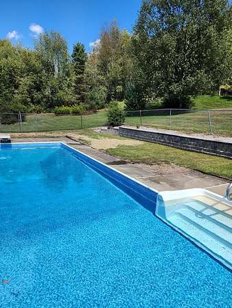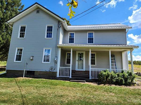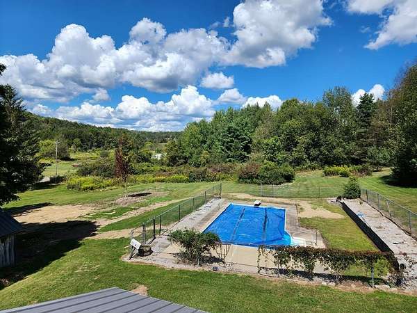 This renovated farmhouse on 4.9 acres offers 3 bedrooms plus a loft with modern updates throughout. The main level features a mudroom with heated floors, closet, washer and dryer, and wash sink. The kitchen has new cabinets, flooring, and appliances and opens to a spacious dining room with fresh paint and flooring. The fully renovated bathroom includes heated tile floors and a Jacuzzi tub. Upstairs are 2 bedrooms and a storage area. The property includes an oversized 2-car garage with a second-floor workshop, a carport, and an in-ground pool with new pump, filter, and liner. A septic system was installed about 5 years ago. Porches provide excellent views of the land, and recent renovations inside and out make this home move-in ready. Listing agent and seller are related.