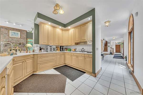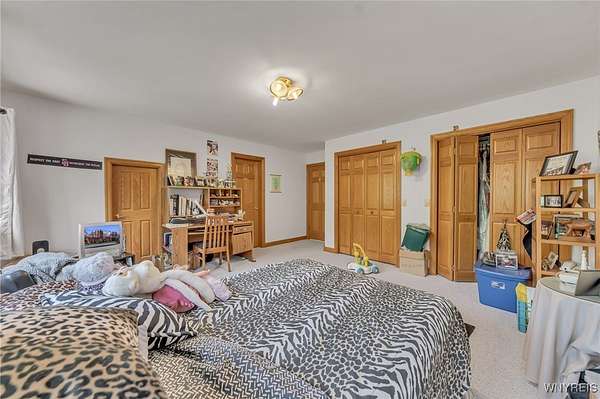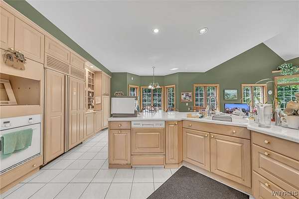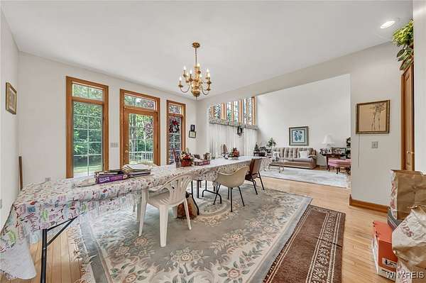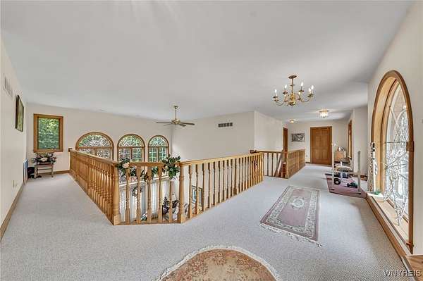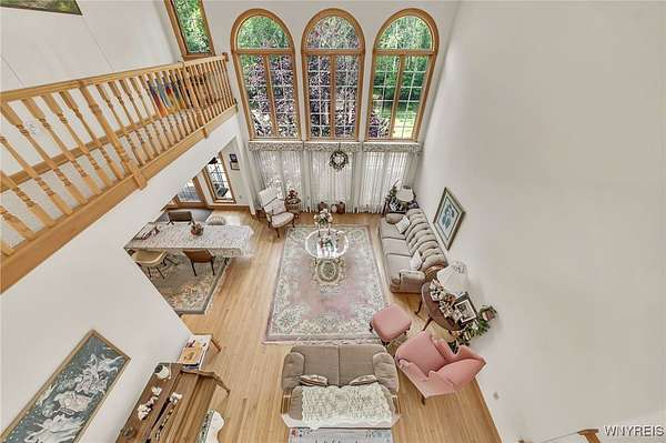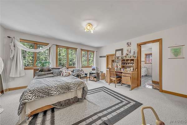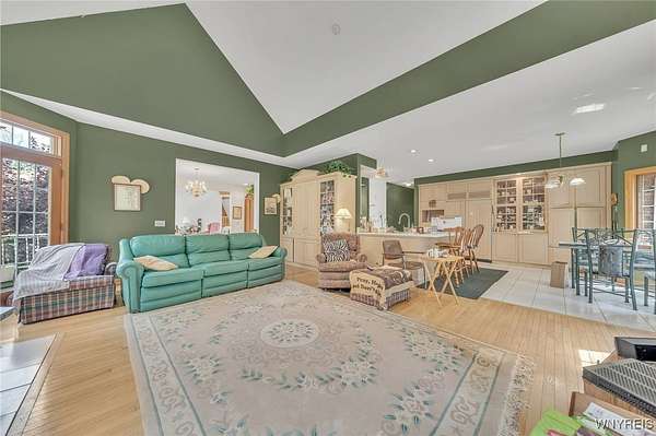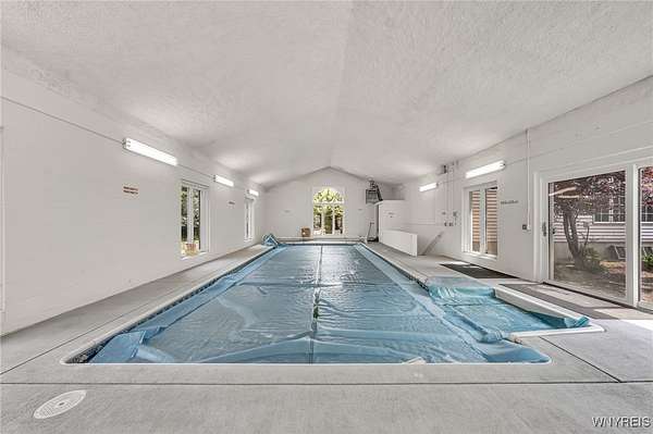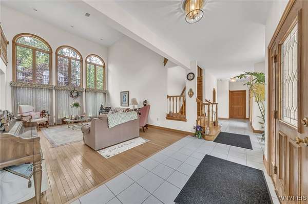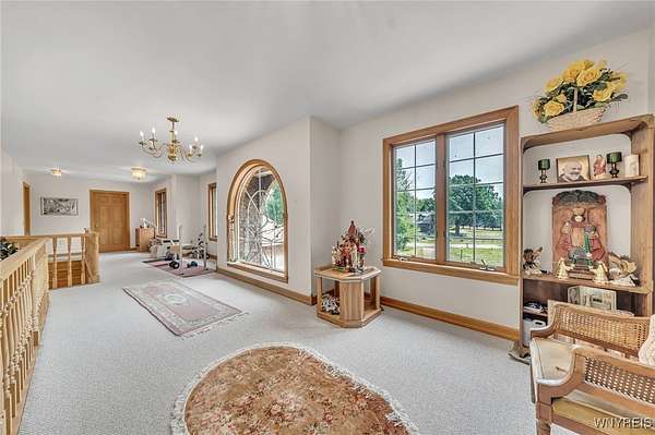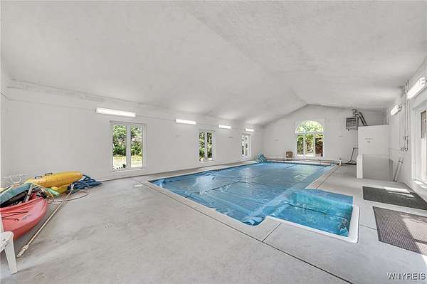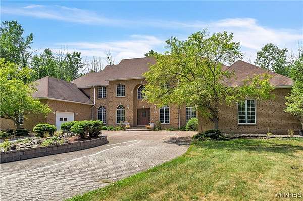Welcome to this stately brick colonial nestled in one of the Town of Batavia's most desirable neighborhoods. Situated on over 2.5 serene acres, this expansive residence offers nearly 4,200 sq ft of living space, designed to impress with both scale and sophistication. Inside, you'll find 5 generously sized bedrooms, including a first-floor master suite for ultimate convenience, and a private guest suite with en-suite bath - perfect for visitors or multigenerational living. The heart of the home is the spacious kitchen, which flows seamlessly into a vaulted family room featuring a striking fireplace and panoramic views of the surrounding nature through soaring two-story windows. Entertain in style with a formal dining room, a gracious living room with open ceiling views to the second floor, and a fully finished expansive basement complete with a full bath for indoor pool use. Step inside the spectacular indoor pool area or enjoy your own outdoor basketball court - perfect for year-round recreation and entertaining. Additional features include: Dual attached garages with space for three vehicles Stamped concrete circular driveway Beautiful original hardwood floors throughout Multiple walk-in closets, attic storage, and an abundance of extra storage space in the basement Bright, airy rooms filled with natural light Every space in this home is generously sized, thoughtfully designed, and brimming with possibility. This is a rare opportunity to own a truly one-of-a-kind estate that combines privacy, luxury, and functionality - all within minutes of amenities, schools, and major routes. This one you wont want to miss!