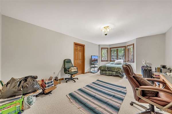 - Bath In Primary Bedroom, Bedroom On Main Level, Cathedral Ceilings, Central Vacuum, Convertible Bedroom, Den, Eat In Kitchen, Entrance Foyer, Jetted Tub, Main Level Primary, Natural Woodwork, Pantry, Primary Suite, Separate Formal Dining Room, Solid Surface Counters, Wet Bar