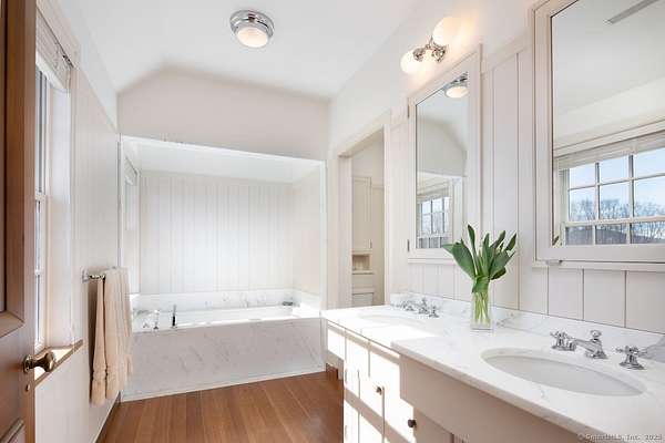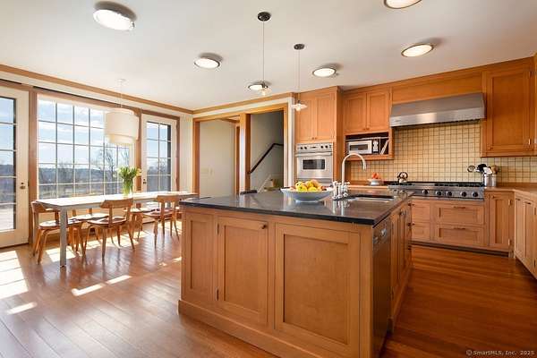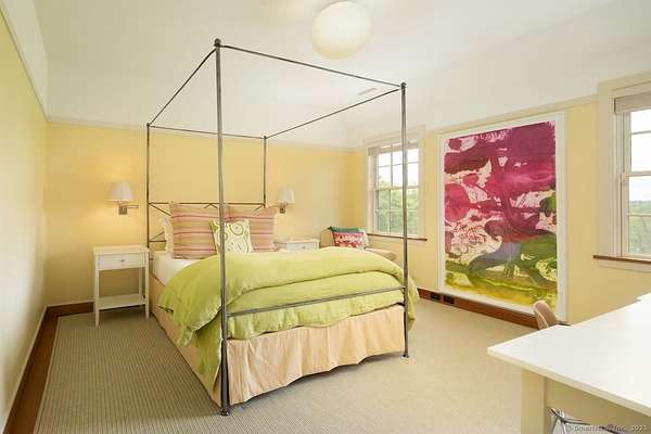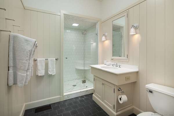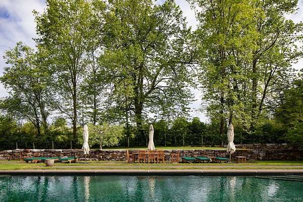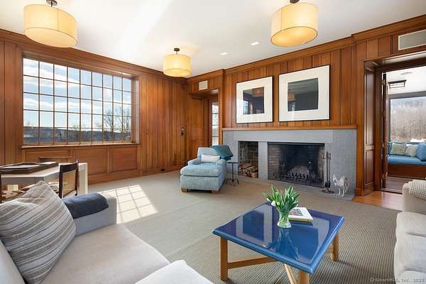 Sprawling Lakeville Compound On 21+ Acres - This idyllic gathering place boasts a 5-bedroom, 7-bath 6,261 sq. ft. Main House and a 3-bedroom, 2-bath, 1,987 sq. ft. Guest House overlooking a Heated 55-ft. Gunite Pool. The Main House was designed by renowned architect Alan Wanzenberg and landscaped by award-winning designer Susan Child. This compound offers peaceful seclusion and convenient access to local amenities and schools. The first floor of the Main House includes a chef's kitchen and a living room, dining room, family room, and screened porch with wood-burning fireplaces-the dining room and chef's kitchen open to a bluestone terrace with Southern views. The first floor also has an ensuite bedroom and a mudroom. The second floor boasts a primary bedroom with a fireplace and a luxurious bathroom, an office with a fireplace, three additional ensuite bedrooms, a laundry room, and a den. The lower level offers a recreational room/gym, a wood-paneled wine cellar, and extensive storage. The property features mature trees, orchards, stonewalls, perennial gardens, and a half basketball court that could readily be converted to a pickleball court. The charming timber frame red barn built by New England Barn Company is an open canvas for car storage, golf simulator, party barn, or office/studio space. Enjoy privacy, comfort, and accessibility near Lakeville Lake, Salisbury, Sharon, Millerton, NYC train, Hotchkiss School, and Indian Mountain School.