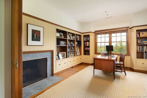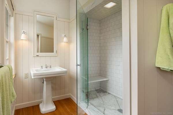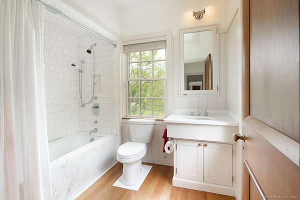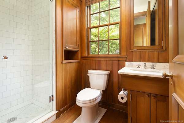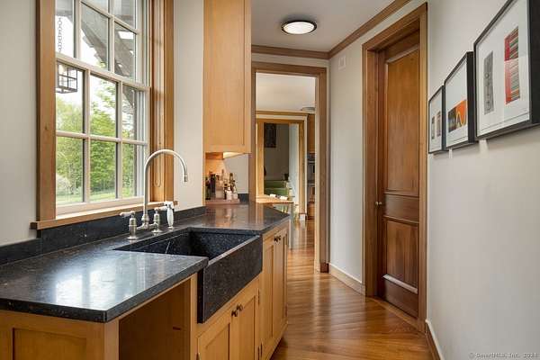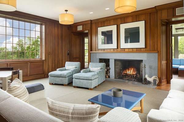 Discover this idyllic 5-bedroom, 7 bath, 6,261 sq. ft. Modern Shaker Main House with a 3-bedroom, 1,987 sq. ft. Guest House designed by renowned architect Alan Wanzenberg and landscaped by Susan Child. Located on 21+ acres in Lakeville, CT, this estate offers peaceful seclusion and convenient access to local amenities. The property features mature trees, orchards, stonewalls, and perennial gardens, exuding warmth and comfort. The main floor includes a living room, dining room, family room, and screened porch, each with wood-burning fireplaces-the dining room and chef's kitchen open to a bluestone terrace with Southern views. The first floor also has an ensuite bedroom and a mudroom. The second floor boasts a primary bedroom with a fireplace, a luxurious bathroom, an office, three additional ensuite bedrooms, a laundry room, and a den. The lower level offers a recreational room/gym and a wine cellar. The guest cottage overlooks the heated gunite pool and includes 3 bedrooms, 2 baths, a kitchen, and a living area. The property also features a 1/2 basketball court and a red barn for storage. Enjoy privacy, comfort, and accessibility near Lakeville Lake, Salisbury, Sharon, Millerton, NYC train, Hotchkiss School, and Indian Mountain School. Experience the beauty and tranquility of this exceptional Connecticut property. Schedule a viewing today!