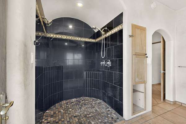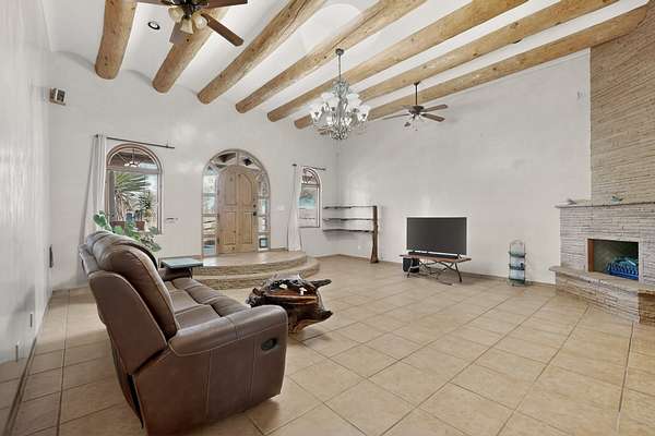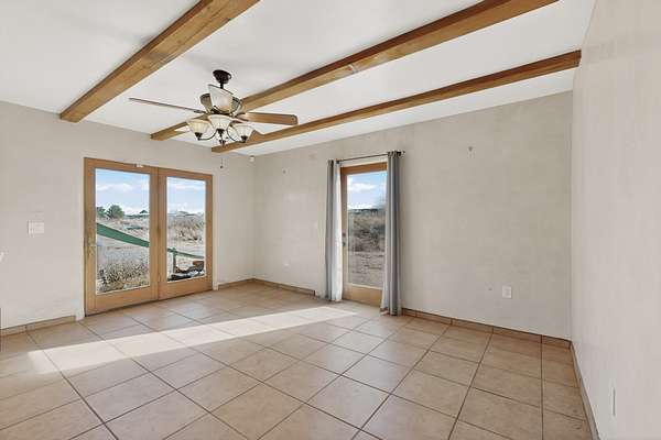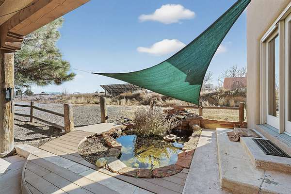 Experience Northern New Mexico living at its finest on this exceptional 2.5-acre property featuring a spacious 4-bedroom, 2 3/4-bath, 2,800 sq ft main home and a fully equipped 3-bedroom, 2-bath manufactured guest house. The impressive, custom-built main residence highlights timeless Southwest charm with plaster walls, vigas, a kiva fireplace, beautiful artistic touches, and warm, inviting living spaces. Sustainable living is built right in with a fully paid-off solar panel system, offering energy efficiency and long-term savings. Outdoors, enjoy incredible views of the mountains, peaceful moments by the tranquil koi pond, or explore the expansive grounds. You can also take advantage of the versatile detached shop/garage-ideal for projects, hobbies, or additional storage. An exceptionally productive private well provides reliable water for both homes and the acreage, enhancing the property's self-sufficiency. Potentially providing as high as 40 to 50 gallons per minute, the pump has been governed to produce at 25 GPM, which easily accounts for any residential, or even livestock need. Additionally, an in-ground 1200 gallon tank provides water to the pressure tanks through an automatic softener. Water is absolutely not an issue at this incredible property. Perfect for multi-generational living, rental income, or extended-stay guests, this rare offering blends comfort, functionality, ample space, and true Southwest appeal. Schedule your private tour today!