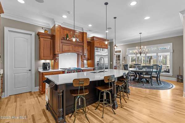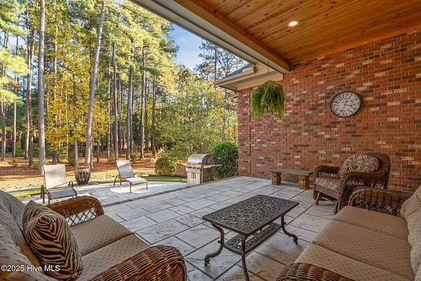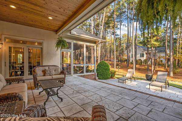 Stately and elegant, this home was built by the highly regarded Brent Smith and is located within one of Pinehurst's premier gated communities, Pinewild Country Club. Perfectly positioned on an oversized, private two-acre lot near the 7th hole of the Magnolia Course, the property offers both privacy and proximity to the best of Pinehurst living. As you enter, you will immediately notice the exquisite updates, including luxurious lighting and fixtures, soaring ceilings, Wolf appliances, and a variety of high-end finishes throughout including custom cabinets crafted by the Amish. The home features a three-car garage, walk-out finished basement, custom wine cellar, office on the main level, fitness rooms, theater room, large workshop, and exceptional storage. Designed for comfortable main-level living, it boasts gleaming traditional hickory floors, an open-concept chef's kitchen, custom closets, and more. The spa-like primary suite offers a serene retreat with a soaking tub, expansive, tiled walk-in shower, and additional beautifully crafted cabinetry. Spacious guest rooms provide comfort and privacy for family and visitors alike. Outdoors, the professionally landscaped lawn is truly postcard-worthy, just the kind of beauty you would expect to see featured in a Pinehurst magazine. A screened porch, custom bar area, covered back porch, and additional patio space create the perfect setting for entertaining. For peace of mind, the home also includes a whole-house generator. If you have been searching for a home that checks every box, this one has it all. A Pinehurst Country Club membership is also available for transfer.