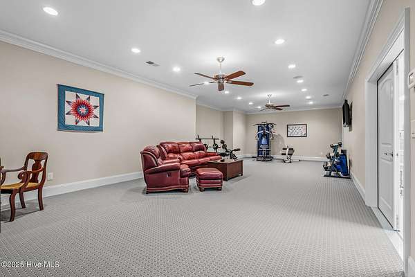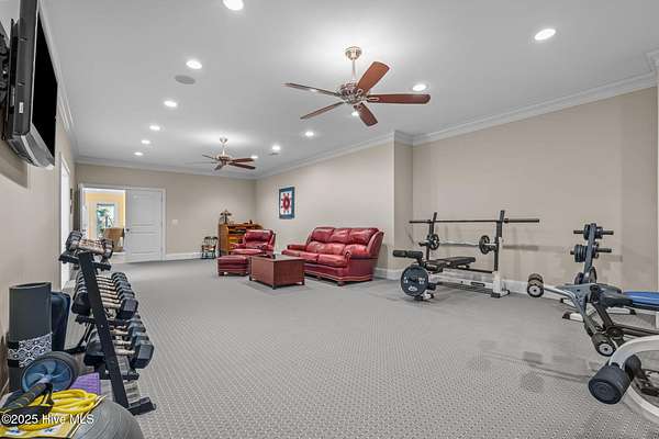 - Basement, Blinds/Shades, Bookcases, Ceiling Fan(s), Entrance Foyer, Gas Log, High Ceilings, Kitchen Island, Master Downstairs, Pantry, Sound System, Tray Ceiling(s), Walk-In Closet(s), Walk-In Shower, Wet Bar, Whole-Home Generator