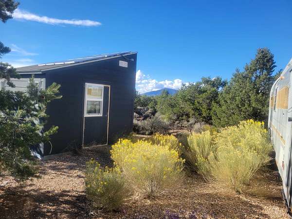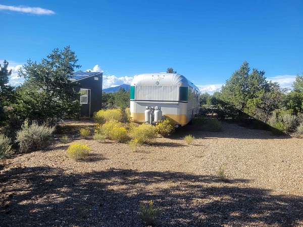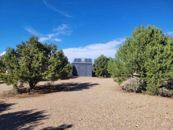 This is a place which needs to be seen in person as pictures won't do it justice. Nestled in between the pinon and juniper trees at the base of the Latirs, this peaceful and serene 5-acre improved lot has so much to offer. Three separate structures are already present. Each one is plumbed. Two of them can be turned into whatever your imagination brings. The current owner was going to house artists. The third structure houses the well, which is powered by solar cells. Electric is right by the lot however, should you want to tap into the grid. The lot has been cleared, and gravel driveways are already there. This is a must see for anyone looking for a special place.