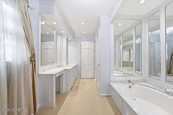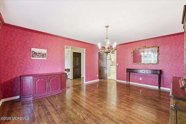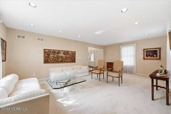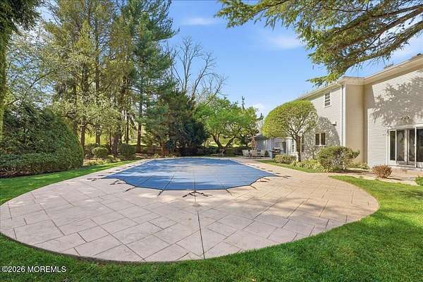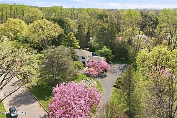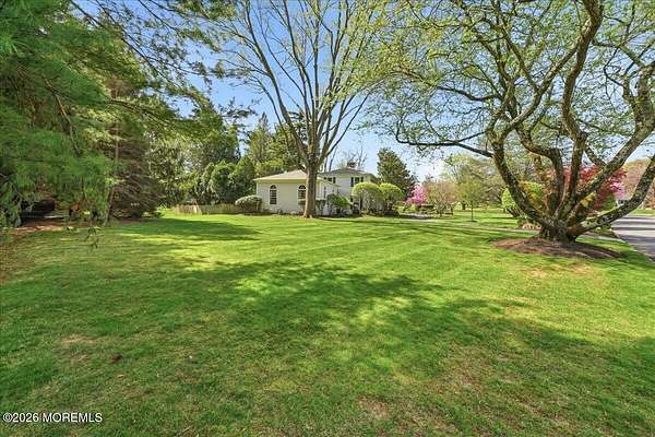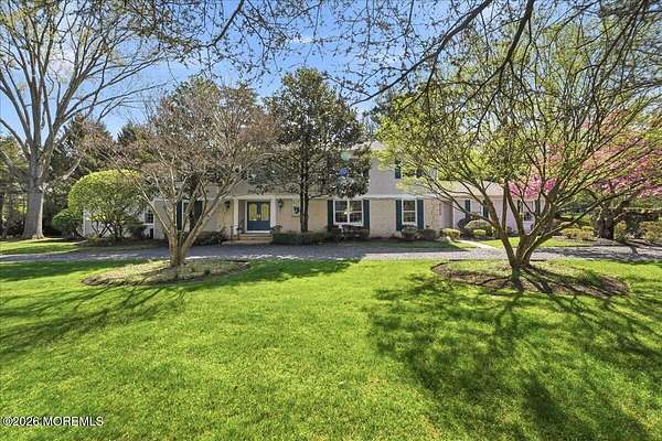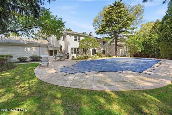 Set on a beautifully landscaped corner lot with loads of flowering trees in one of Rumson's most desirable locations, this classic Colonial offers a warm, inviting layout and exceptional indoor-outdoor living. A welcoming entry leads to spacious formal living and dining rooms with hardwood flooring, creating the perfect setting for both everyday living and entertaining. Just off the formal living room is a great room, offering an expansive and inviting space to gather. The kitchen features a center island, ample cabinetry, and a bright breakfast area overlooking the pool. Upstairs, the primary suite offers a walk-in closet as well as two additional closets and a full bath with double sinks and a tiled shower with separate soaking tub. Three additional bedrooms are well-sized with great natural light, providing comfort and flexibility for a variety of lifestyles. While the home has been well maintained over the years and is move-in ready, it also presents a wonderful opportunity to update and customize to your personal vision. The backyard is a true highlight--designed for privacy and enjoyment, with mature landscaping, an in-ground pool, and a patio perfect for relaxing or entertaining throughout the seasons. Additional features include a full unfinished basement, attached two-car garage with direct access, underground sprinklers, and a new roof installed in 2026. Ideally located near Rumson's parks, waterfront access, and everyday conveniences--and with access to the Rumson school district, known for exceptional education--this home offers a rare opportunity to enjoy a premier location with the ability to make it your own over time.