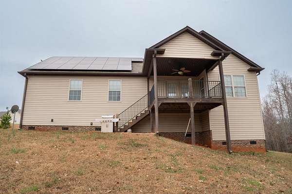 Est $1,675/moMOTIVATED SELLER! HOME QUALIFIES FOR 100% FINANCING AND COMES WITH A HOME WARRANTY AS WELL!This beauty near the golf course is move in ready offering 3 spacious bedrooms, 2 full baths, arched doorways, gas log fireplace, walk in laundry, stainless appliance package, PAID IN FULL SOLAR PANELS, hardwood floors, real wood cabinetry, granite countertops AND a covered walk out deck overlooking a beautIful 1.55 acres WITH CREEK! This is a cul-de-sac lot and there is no HOA!