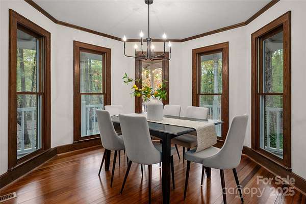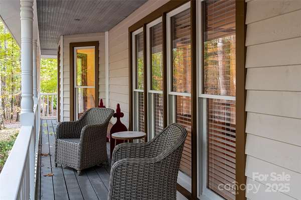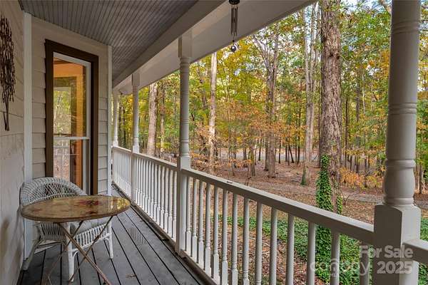 Enjoy this rare opportunity to own a 3.29-acre private estate yet just minutes from downtown Matthews, Waverly, Rea Farms and I-485. This charming 2-story home blends serene Low Country/Farmhouse style with modern updates. Heart of pine hardwoods, solid wood doors, handcrafted cabinetry with punch-tin accents, new quartz countertops, fresh backsplash, and warm wood details throughout create an inviting and timeless ambiance.The main-level primary suite features an updated and spacious bathroom with a walk-in shower. Cozy up in the bedroom with the wood-stove or enjoy your morning coffee with direct porch access. You'll find a secondary bedroom and full bath on the main. The great room featuring a wood-burning fireplace, plus dining and sunroom, provide comfortable everyday living. Upstairs offers a massive bedroom and a huge bonus room ideal for office, media, or flex use - with a shared full bath.Enjoy the outdoors from the true wrap-around porch or the patio. A detached workshop is wired and can be converted into a garage and provides great storage. No HOA and over 3 acres in highly sought-after Weddington schools - nearly impossible to find! Come experience this one-of-a-kind property that is full of history and custom workmanship! The mantel is a reclaimed church pew and the front door is from the original Hotel Charlotte (1924-1988). Wood destroying insect inspection completed 11/10/2025 with no evidence of WDI. 1500 gallon septic tank pumped on 11/13/25.