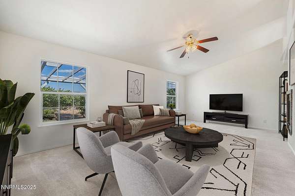 Motivated sellers - bring your offers! Welcome to 110 Arabian Way in Rancho Haven-where wide-open views meet thoughtful updates. Newly replaced items include the roof, well pump, water heater, furnace, carpet, paint, and garage doors, giving you move-in peace of mind. Set on a fully fenced property with an additional fenced area near the house (ideal for a pet), the home balances rural privacy with proximity to Reno's conveniences. A gravel driveway with a security gate offers easy access and extra security. Inside, you'll love the bright, functional layout featuring vaulted ceilings and a double-sided fireplace that warms the main living areas. The private living room, three comfortable bedrooms, a kitchen with ample storage, and an oversized laundry room that doubles as a mud room keep daily life organized. Take in stunning valley and mountain vistas-Northern Nevada living at its best!