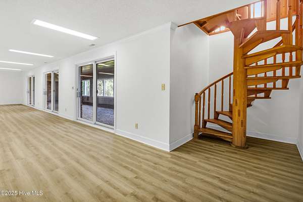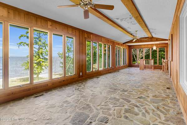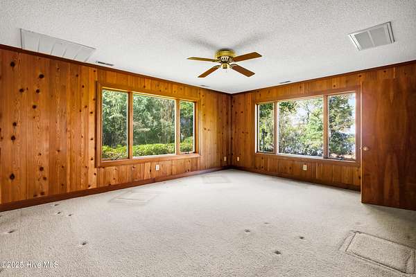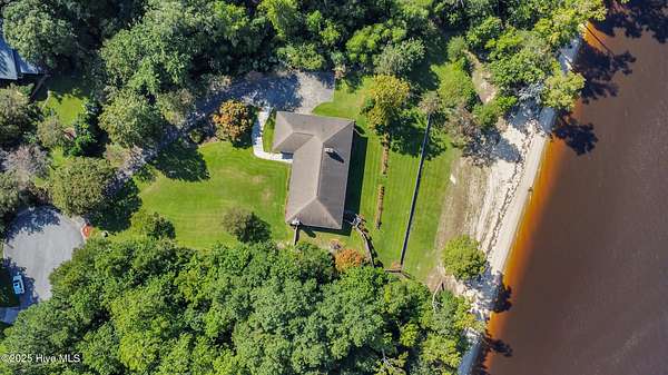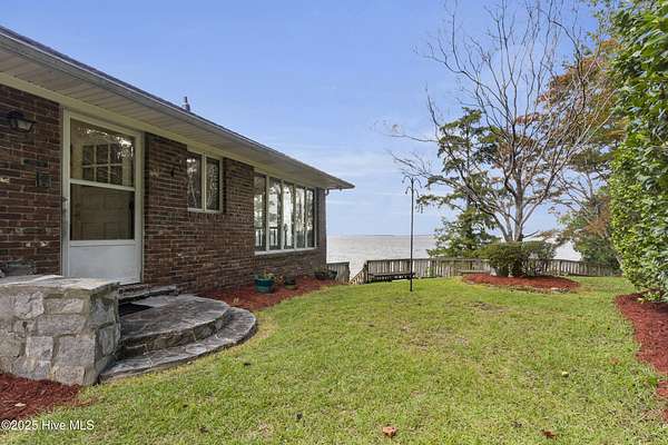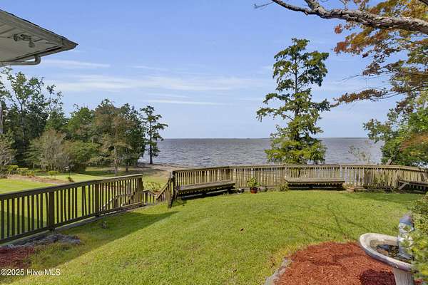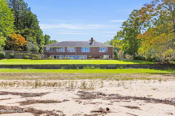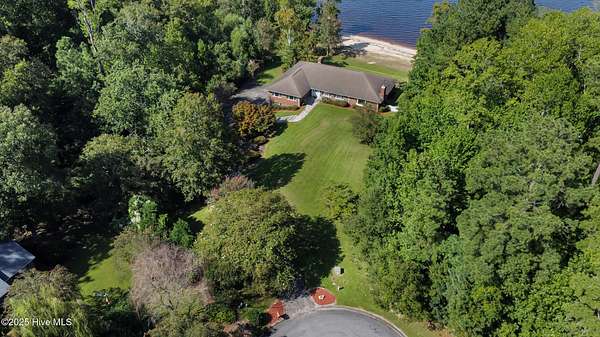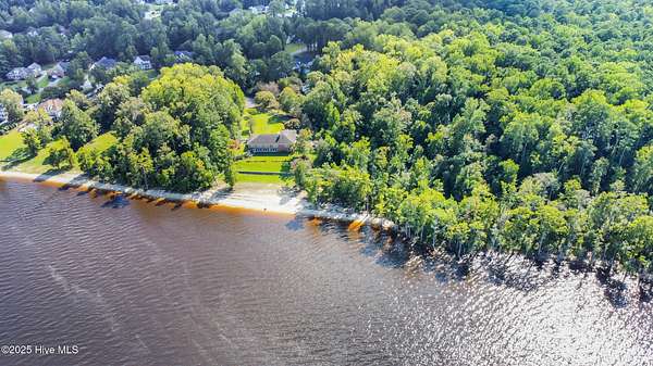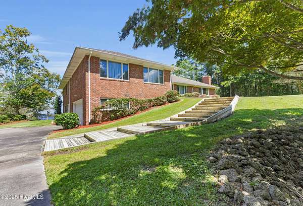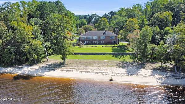 Welcome to this one-of-a-kind waterfront estate in the desirable Neuse Harbour community. Set on 2.42 acres, this rare property offers privacy, space, and stunning views of the Neuse River. The sale includes two parcels: the main home on 1.65 acres and a 0.77-acre lot next door-perfect for added privacy. This spacious home offers 5,764 heated sq ft, with 3,789 sq ft above grade and 1,975 sq ft below grade. The grand foyer opens to a bright living room with large windows framing river views. The main level features three bedrooms, including a large primary suite with water views, generous closets, and a bathroom with soaking tub and separate shower. Two additional bedrooms share a full bath, and a half bath is located in the hall. The formal dining room includes built-ins for entertaining, and the kitchen has space for a breakfast table and cozy sitting area by the wood-burning fireplace. A sunroom off the kitchen leads to a staircase down to the lower level. A second half bath and elevator provide added convenience. Downstairs, enjoy a spacious family room, second kitchen with laundry area, craft room, office, full bath, two-car garage, and an additional garage/workshop. An enclosed porch opens to the backyard with direct beach access and plenty of outdoor space. With the Croatan National Forest on one side and your additional lot on the other, this home offers unmatched peace and seclusion. Whether entertaining guests or enjoying quiet mornings by the water, this property delivers a lifestyle that feels like a permanent vacation. Don't miss your chance to own a truly unique slice of waterfront paradise. Schedule your private tour today.