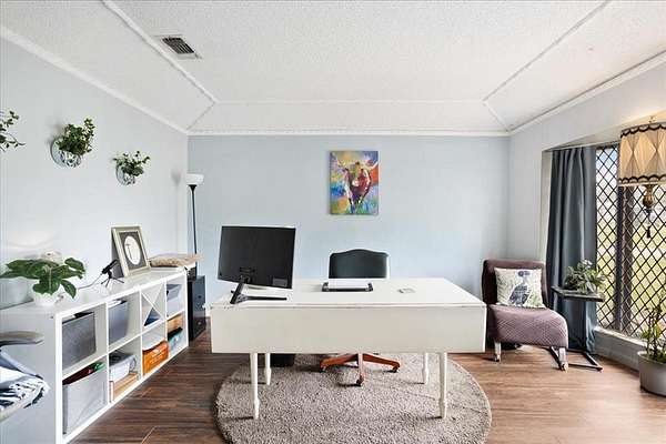 Inside, you’ll find four bedrooms and three full bathrooms, along with formal living and dining areas and a flexible space ideal for a home office, reading room, or additional living area—perfect for today’s lifestyle. A cozy fireplace anchors the main living space, creating a warm and inviting setting for both everyday living and entertaining. The versatile lanai offers endless possibilities, whether you envision a game room, home gym, sunroom, or additional living space tailored to your needs.