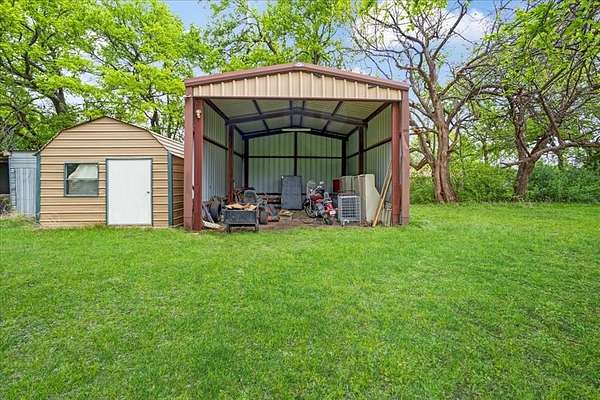 Thoughtfully positioned on the acreage, the home enjoys approximately one acre of separation from the nearest neighbor, offering a peaceful sense of privacy while still being just four blocks from Tom Bean City Hall. The property is well-equipped with an RV building with electricity and lighting, a workshop, multiple storage sheds, and a chicken coop—ideal for storage, hobbies, or embracing a country lifestyle close to town.