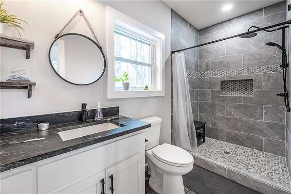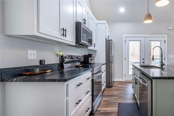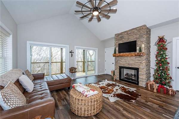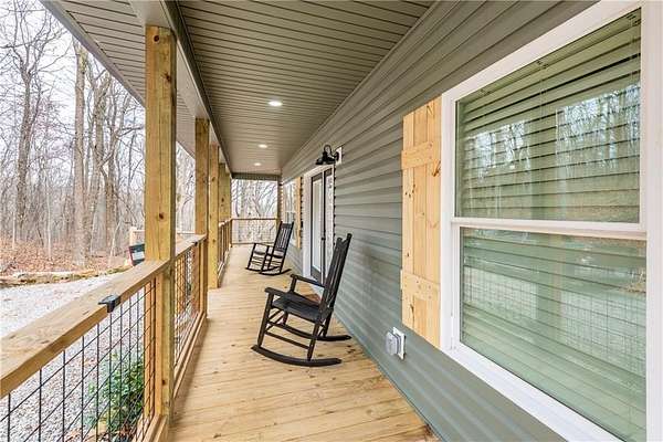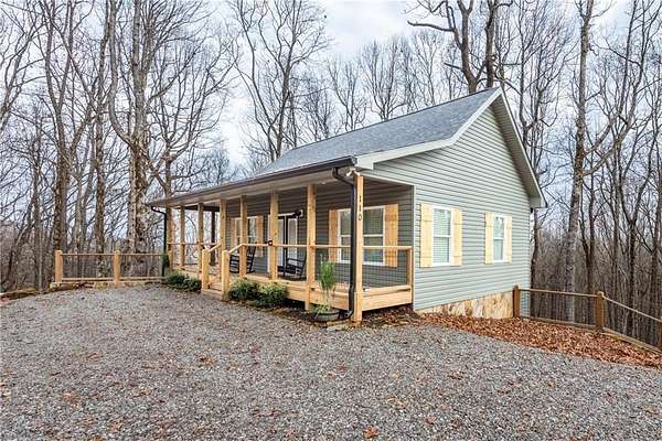 Discover this like-new mountain retreat perfectly situated on 2.07 private, wooded acres with a mountain view. Quality craftsmanship is evident throughout, and the home has only been lightly lived in as a part-time residence since completion. The inviting open floor plan features LVP flooring throughout, a beautiful stone fireplace in the family room, and an incredible wall of sliding glass doors that fill the space with natural light. The family room flows seamlessly into a spacious kitchen complete with white cabinetry, stone countertops, and a generous walk-in pantry, a bonus for storage and convenience. The owner's suite is located on the main level for easy everyday living. The finished terrace level offers excellent flexibility with an additional bedroom, a full bath, and a large family room that could easily be converted into a third bedroom if desired. This daylight basement also provides direct access to the backyard. Outdoor living is a true highlight, with a covered porch that spans the entire length of the home and wraps around one side-perfect for taking in the serene mountain surroundings. Located at an elevation of approximately 3,000 feet, you'll enjoy cooler temperatures, outstanding privacy, and the peace and quiet that make this setting so special.
