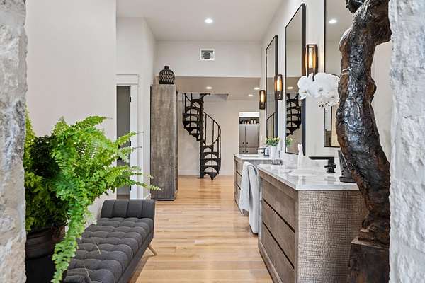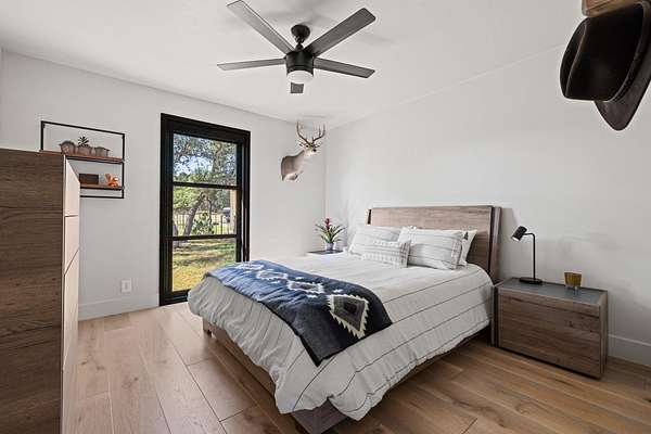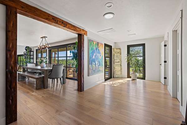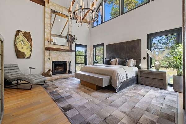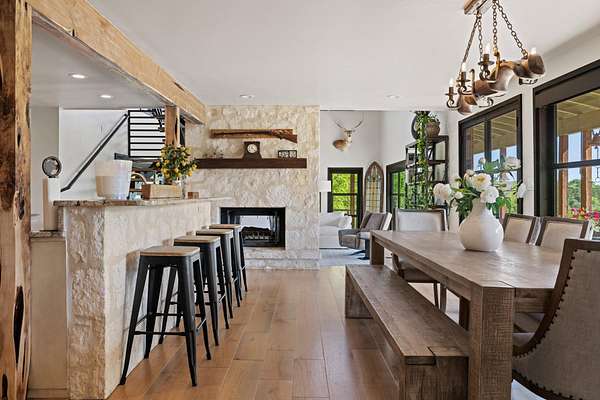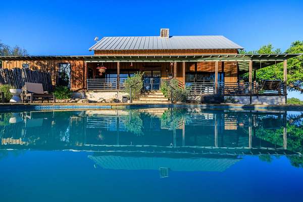 M4 Ranch - +/-56.5 Acres | Spring Branch, TX Turnkey Hill Country ranch just 15 mins to Canyon Lake, 1 hr to Austin/San Antonio. +/-3,058 sqft 4-bed, 3.5-bath home with beam-accented ceilings, double-sided stone fireplace, oversized steel-framed windows/doors, wraparound porch, and pool with big views. Master suite features vaulted ceilings, fireplace, reading loft, spa-like bath with walk-in shower, stone tub, dual vanities, separate toilets, his-and-hers closets, and outdoor shower. Two guest rooms and full bath downstairs; guest suite and reading nook with fireplace upstairs. +/-2,160 sqft barn with water/power, paved driveway, RV hookups. Rolling topography, mature oaks, +/-2-acre pond, +/-1,600' of Carpers Creek, native/exotic game: Axis, Sika, Blackbuck, Whitetail, turkey. High-fenced, wildlife valuation in place. Main access through Mystic Shores; secondary access via recorded 40' easement to FM 32. Great setup for homestead, STR, or weekend escape.