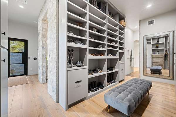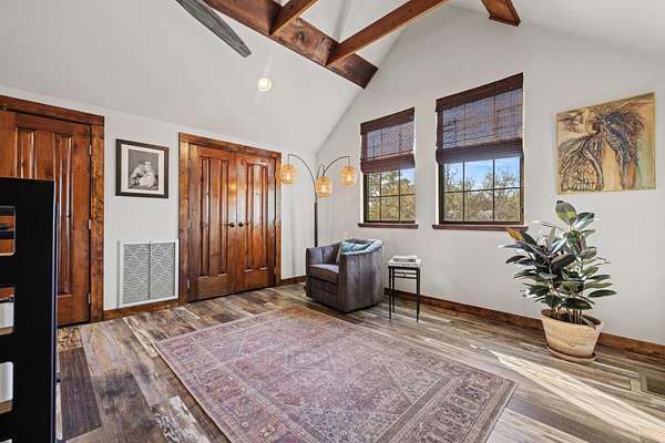 - Beamed Ceilings, Breakfast Bar, Ceiling-High, Chandelier, Double Vanity, Granite Counters, Natural Woodwork, Pantry, Primary Bedroom On Main, Smart Thermostat, Two Primary Closets, Vaulted Ceiling(s), Walk-In Closet(s)