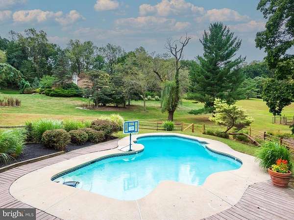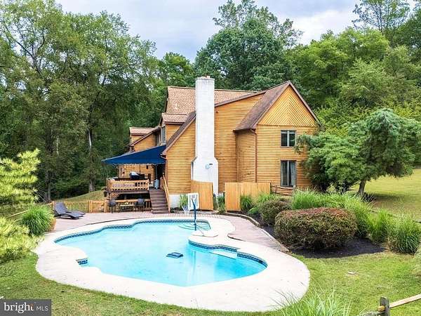 Welcome to your private oasis in award-winning Downingtown Schools. Tucked away on 4 acres, this 5-bedroom, 2.5-bath custom home blends space, charm, and comfort with a setting that's hard to match. Step inside the elegant foyer with hardwood floors and custom trim, opening to an airy 2-story living room and formal dining room--perfect for entertaining. The remodeled kitchen flows seamlessly into the inviting family room with its stone fireplace, both offering access to expansive decks overlooking the in-ground pool and professionally landscaped grounds. The main level also includes a powder room, spacious laundry, and oversized 3-car garage. Upstairs, the primary suite features a vaulted ceiling, sitting area with jetted tub, and en suite with dual walk-in closets and dressing area. Four additional bedrooms and a hall bath complete the second floor, with walk-up attic storage above. The finished walk-out lower level offers flexible living space for recreation, fitness, or media. Outside, enjoy multiple decks and patios designed for entertaining, all with serene views of a peaceful and private landscape. Conveniently located near parks, shopping, and major roadways, this home delivers the perfect balance of privacy, comfort, and accessibility.