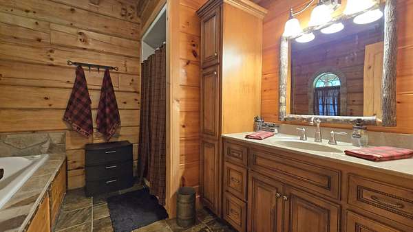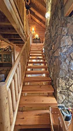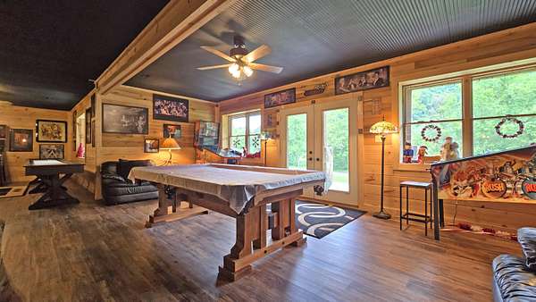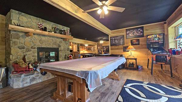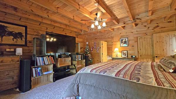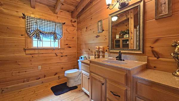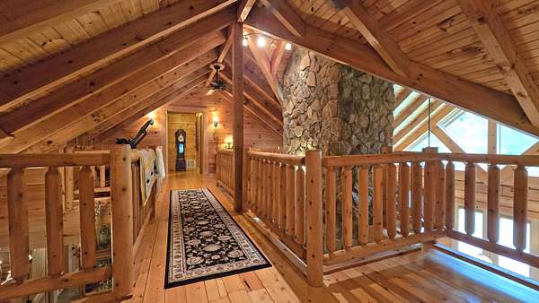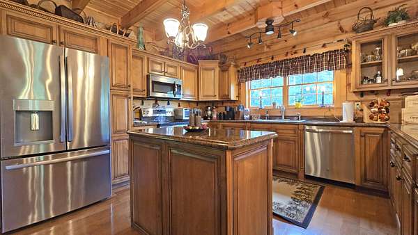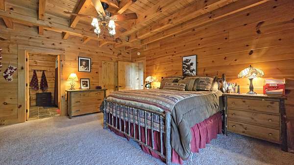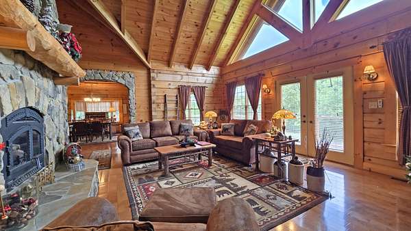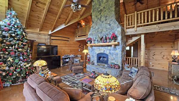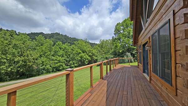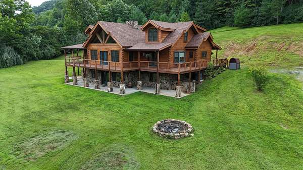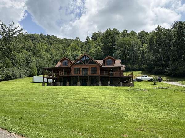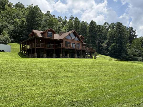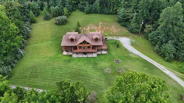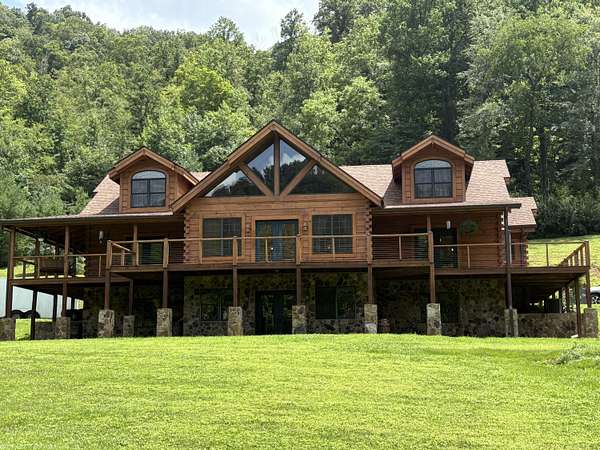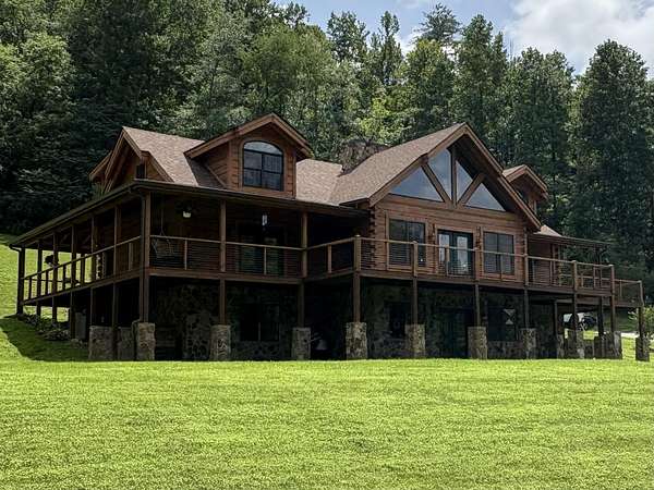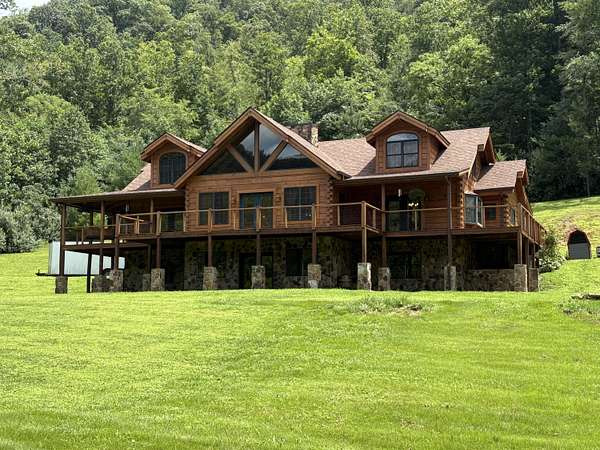 Nestled in a quiet, serene location, you'll find this beautiful, custom-built log cabin. With 4 bedrooms (2 of which can be primary bedrooms) and 4 1/2 baths, there are plenty of options for the family. Large kitchen with walk-in pantry and attached dining area. Huge family room with 14 ft, ceilings and windows offering an expansive view of the outdoors. Cozy gas fireplaces both upstairs and down. Large laundry room. Primary bedroom has attached bath with walk-in shower and jetted tub. Hardwood flooring throughout. Upstairs you'll find two other bedrooms with plenty of storage, a full bath and yet a fourth bedroom with attached bath and walk in closet, Balcony views of the first floor and outdoors are outstanding! A finished, walk-out basement (completed in 2023, adding additional sq footage) complete with a kitchen, utility room and large full bath offers lots of extra living space and could be used as an Air BnB. French doors lead to a covered porch. Commercial grade laminate flooring throughout basement. Charming wrap around porch with plenty of privacy in the back. Almost 13 acres with a cleared attached lot perfect for another home. Manchester is known for its beautiful. riding trails, fishing and kayaking. Close proximity to Red River Gorge and Cumberland Falls. New roof, gutters, AC units (4-ton Trane and (2) 2-ton Trane units) all in 2024 with paperwork available. New septic field in 2025. Exterior of the entire home has been sandblasted and restored! Buyers to verify sq. footage. PRE-QUALIFIED buyers only! Some furniture and recreational items may be negotiated.