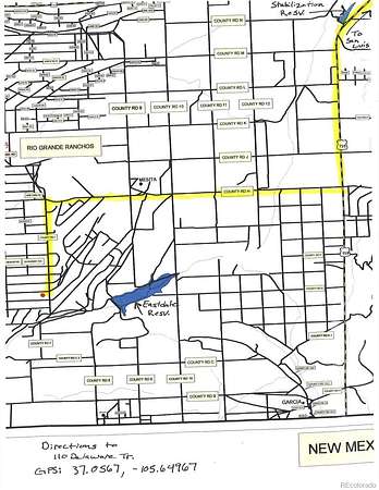 Take Hwy 159 south out of San Luis until you get to Co Rd H, turn right (W) on H and follow this through the small town of Mesita all the way to Co Rd 7, turn left (S) on 7 and follow to Delaware Trail, turn right (W) and the property will be on your left.