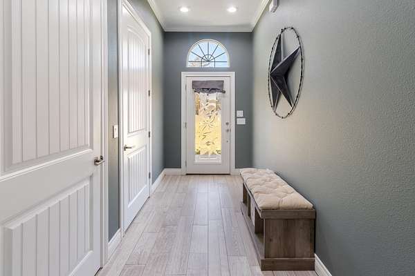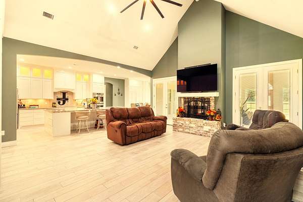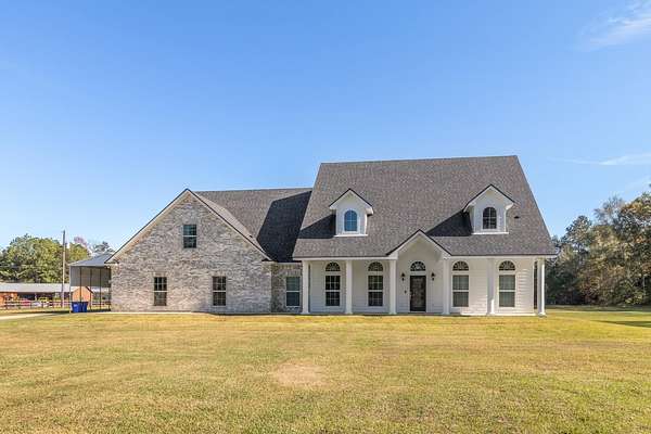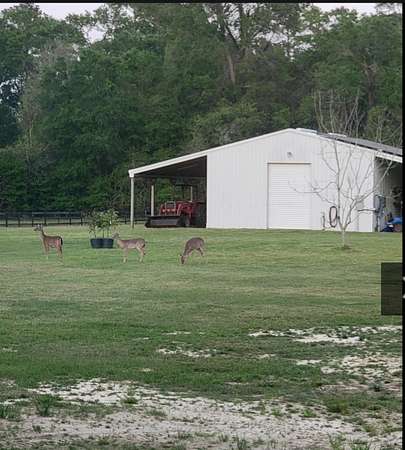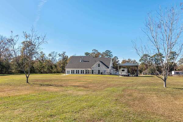 Experience the perfect blend of country charm and modern conveniences in this Custom-Built Home (FLOOD ZONE X: no flooding!) on 4.83 cleared acres underream slab, 50x50 concrete workshop with dual carports and 25x50 covered RV pad. Sustainably designed, this all-electric, PAID FOR solar-powered property offers energy efficiency with six tankless water heaters. The gourmet kitchen includes two dishwashers, induction cooktop, double oven, oversized sink with sensor faucets, waterfall granite counters, and walk-in pantry. Living space features woodburning fireplaces in den and sunroom. Wood grained porcelain flooring throughout. Designed for accessibility with wide doorways, no step-ups and roll in shower. Primary suite boasts two 11x7 walk-in closets, ductless AC, and fireplace-heated bath with spa 10' walk-in shower. Additional highlights: storage space in every room, oversized 2-car garage and foam-insulated walk-in attic with conversion potential for game room or second living space.