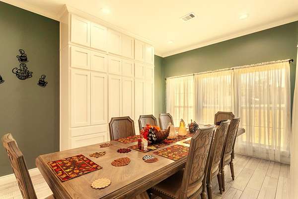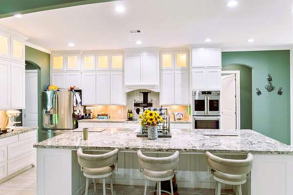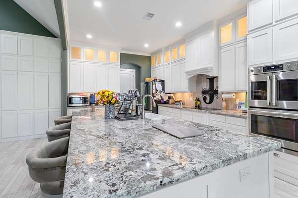 - Blinds/Shades, Breakfast Bar, Built-In Oven, Cook Top, Double Oven, Granite Counter Tops, Ice Maker Conn., Inside Utility Room, Island Work Center, Open Concept, Pantry, Quartz, SLD Surface Countertops, Self-Clean Oven, Smoke Alarm, Tile Floors, Vent Fan