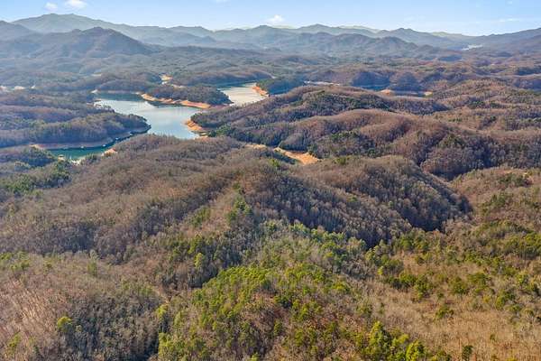 Rare mountain property with 21.44 surveyed acres adjoining U.S. Forest Service land, just across from Fontana Lake. Multiple build sites across rolling terrain, with level drive-in access via dirt road. Lower sections offer open ground for primary builds, upper ridges provide lake views and additional building potential. A log cabin remains on site. Unrestricted use allows RVs, short-term rentals, and multiple structures. The survey clarifies exactly where to build, removing guesswork and opening up true potential. USFS as permanent southern neighbor guarantees privacy and forest setting. Ideal for buyers seeking an off-grid cabin, lake getaway, or development flexibility.