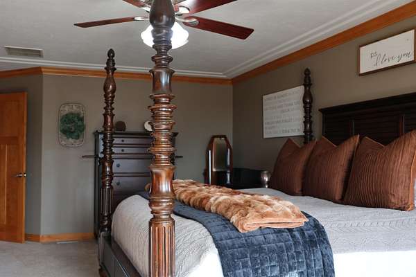 This luxurious 4,400 sq ft single-family home for sale, exquisitely scaled for growing families who want room to live, work, and entertain in elevated comfort and enjoyed the privacy of rural living. This 4-bedroom, 3.5-bath residence pairs high ceilings, hardwood floors with high-end finishes throughout, creating a warm, polished backdrop for everyday life. The layout supports both connection and privacy, featuring a dedicated home office, an inviting fireplace, generous master walk-in closet and a walk-in pantry that complements the eat-in kitchen. The finished basement expands your options for play, media, fitness, or guests, and the walk-out basement design brings effortless flow to the outdoors. Enjoy fresh-air moments on the composite deck, appreciate the convenience of an attached garage, LOW taxes, and admire the timeless curb appeal of a stucco exterior, all set on an exceptionally rare 4.45 ac lot size, with exquisite landscaping all on located on a hard surface road!