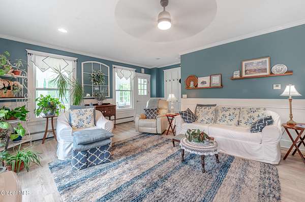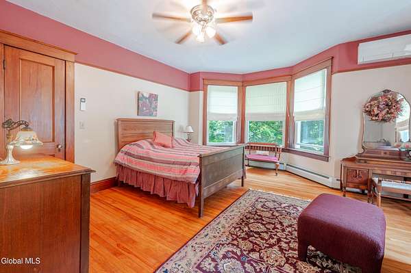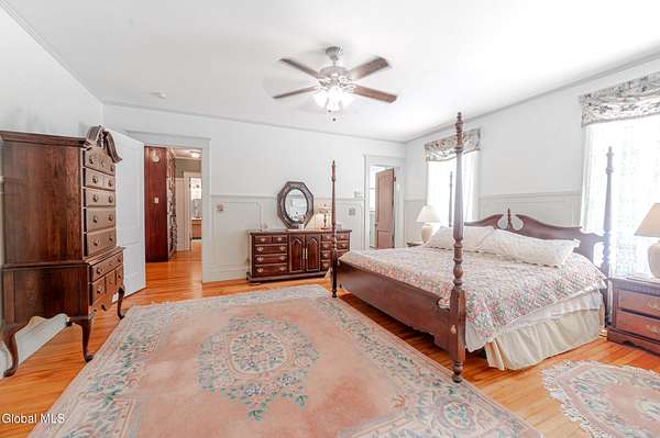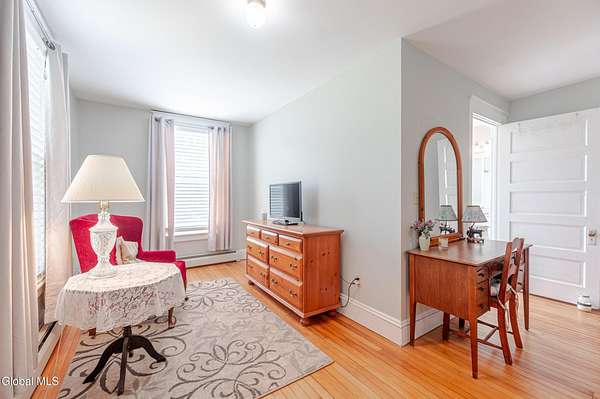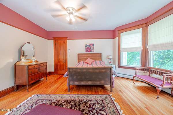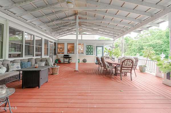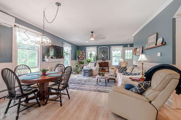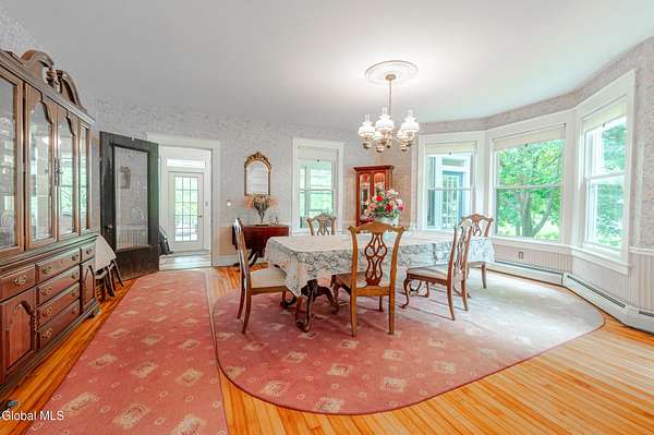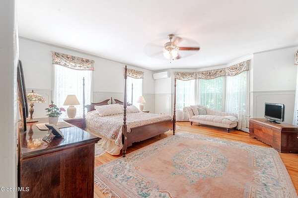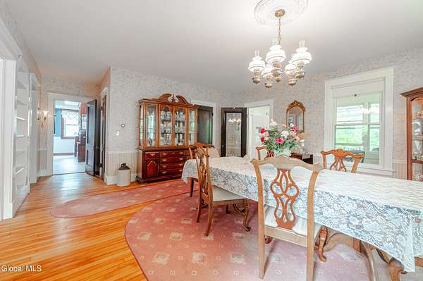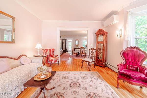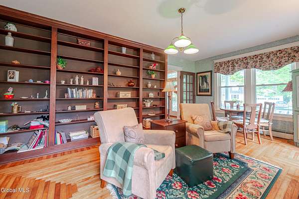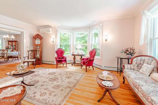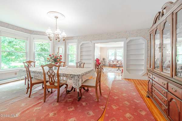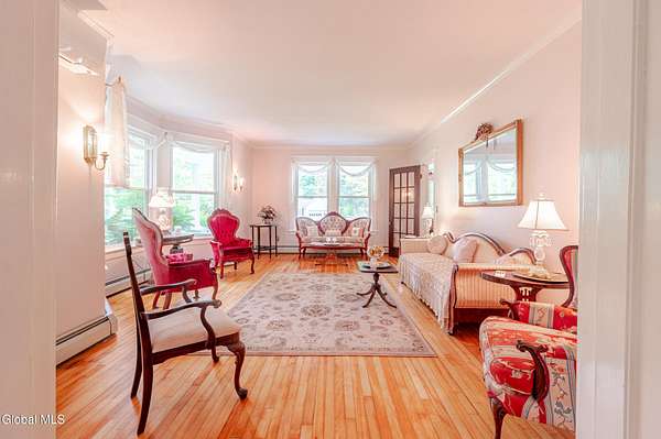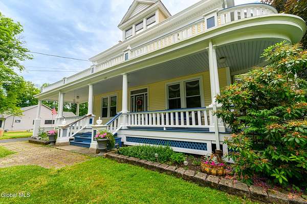 This beautiful large colonial has been updated and maintained by the owners for over 30 years! Featuring public water and sewer, 1.62 acres, over 4,500 sq ft. of living space, 5 bd, 5 bth, blown-in insulation, newer windows, 5 heat zones, mini-splits, fresh int/ext. paint, and more! Enjoy spacious bedrooms and large closets. Original charm includes maple hardwood floors throughout, Butler's Pantry and library built-in bookshelves. Walk-up attic for office spaces, storage etc. Walk-out basement that can easily be converted to an apt. Multiple porches and a large covered deck for gathering. Could be a Bed and Breakfast! Highly-rated schools. Easy 15min. commute to Albany, shopping in East Greenbush, Regeneron & Amtrak station to NYC. Less than 1 hr to ski mountains in Catskills or Saratoga!