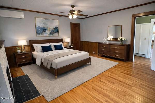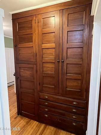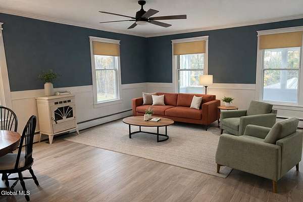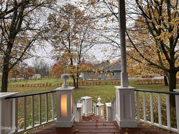 This beautiful large colonial has been updated and maintained by the owners for over 30 years! Featuring public water and sewer, 1.62 acres, over 4,500 sq ft. of living space, 5 bd, 5 bth, blown-in insulation, newer windows, 5 heat zones, mini-splits, fresh int/ext. paint, and more! Enjoy spacious bedrooms and large closets. Original charm includes maple hardwood floors throughout, Butler's Pantry and library built-in bookshelves. Walk-up attic for office spaces, storage etc. Walk-out basement that can easily be converted to an apt. Multiple porches and a large covered deck for gathering. Could be a Bed and Breakfast! Highly-rated schools. Easy 15min. commute to Albany, shopping in East Greenbush, Regeneron & Amtrak station to NYC. Less than 1 hr to ski mountains in Catskills or Saratoga! *Some photos are digitally staged.