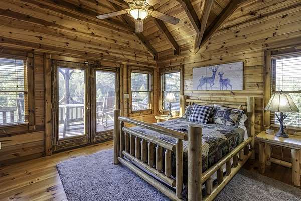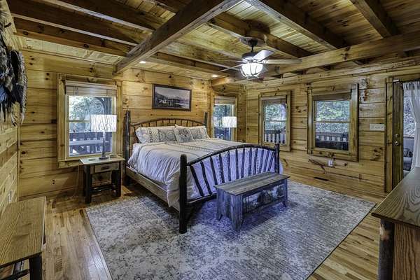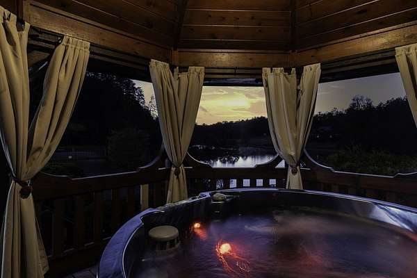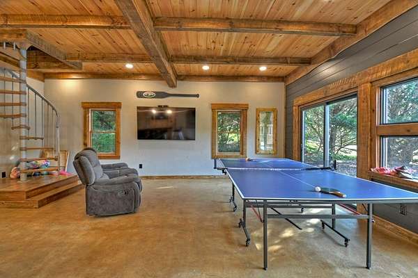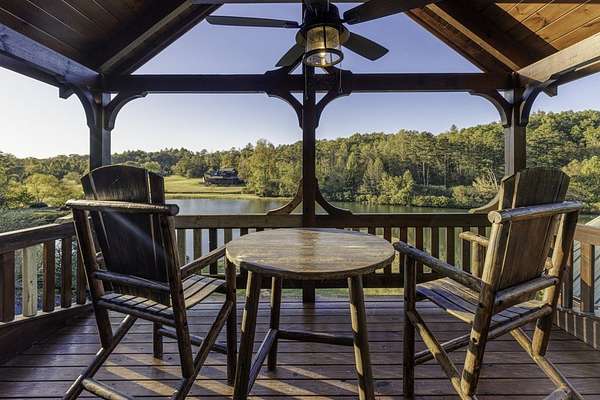 Nestled on 2 private acres in an exclusive gated community, this 4BR/3BA custom cabin combines privacy, lake access, and convenience--just 20 minutes from downtown Blue Ridge and McCaysville. Surrounded by mature trees, it's serene and secluded. Currently a high-performing STR with a 5-year rental history averaging per year, some years in the six figures. All furnishings negotiable. Enjoy wraparound decks, a private dock on the stocked lake, a designated hot tub area, and a brand-new custom fire pit. Recent updates include a new HVAC & in landscaping, fire pit, and fencing. Inside, the main living area features 2-story ceilings and an open kitchen/dining space. Main-level owner's suite with a loft-style game area, two bedrooms, and a spacious custom bunk room upstairs. The fully converted 2-car garage offers lounge, bar, and game space with sliders and lake views--easily convertible back. Tons of driveway parking and storage shed! Recent appraisal available upon request.