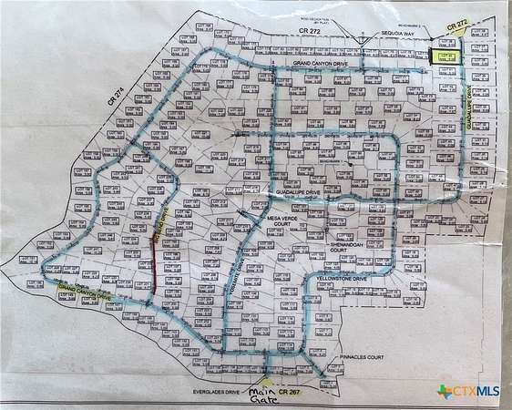 From Coryell County Courthouse in Gatesville, continue east on US-84 E/E Main St for 9.4 miles, turn left on CR 267, follow 267 for 2.7 miles until Twin Caverns entrance. Take a right on Yellowstone Dr, then a right on Guadalupe. Property will be on the left.