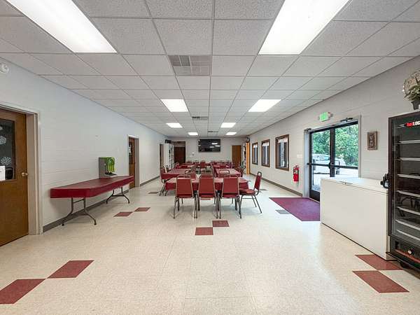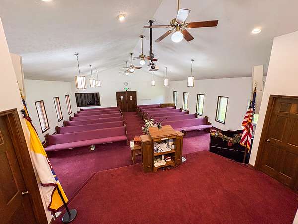 Beautiful all brick church with full finished basement. Since the first service held on July 4th, 1998 this building has been used for worship whose congregation is growing to capacity and beyond. Located in the full finished walkout basement there is a full kitchen with pantry, three rooms each with individual closets, two storage closets, big beautiful windows and double glass doors. Metal roof installed in approximately 2015. This beautiful building has been used as a church, but has the potential to be anything you desire.