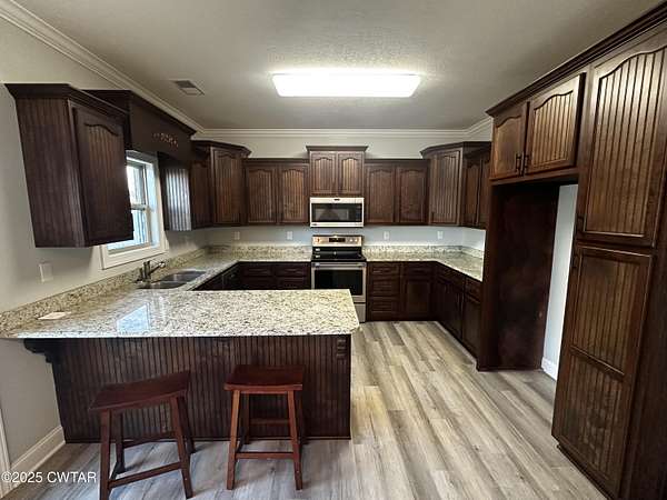 - Breakfast Bar, Ceiling Fan(s), Crown Molding, Eat-In Kitchen, Fiber Glass Shower, Granite Counters, Soaking Tub, Tub Shower Combo
