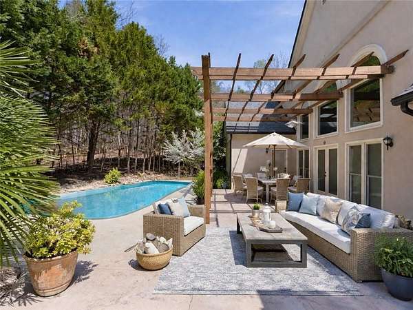 Welcome to 110 Hermitage Court, an exceptional estate tucked away on a private wooded cul-de-sac lot in Powder Springs. Located in a prestigious community where neighboring homes are valued at over $1 million, this residence offers a rare blend of privacy, scale, and refined living. With 5,586 square feet of thoughtfully designed space, the home features recent renovations and elevated finishes throughout, while also allowing a discerning buyer the opportunity to personalize select spaces to their own style. The main level showcases a beautifully appointed primary suite with a spacious layout and spa inspired feel, creating a private retreat for everyday living. Natural light fills the living areas, and the flowing floor plan is ideal for both entertaining and comfortable daily living. Step outside to your private backyard oasis featuring a swimming pool surrounded by serene wooded views-perfect for relaxing or hosting unforgettable gatherings. The finished basement adds incredible versatility and can serve as a home gym, recreation room, media room, or private office suite, offering flexible space to fit your lifestyle. Set on 1.5 private wooded acres and conveniently located in top rated schools, shopping, and dining, this is a rare opportunity to own a beautifully updated estate with the ability to tailor select elements to your taste in one of Powder Springs' most desirable communities. 110 Hermitage Court is more than a home; it's a private retreat designed for elevated living.