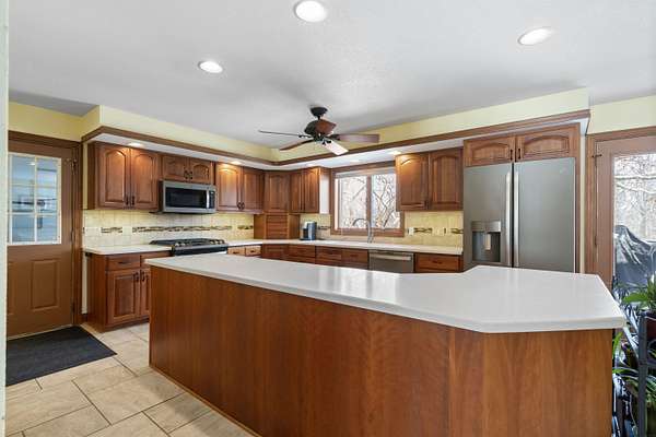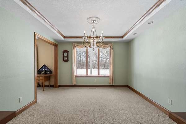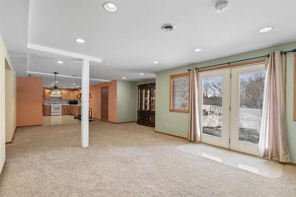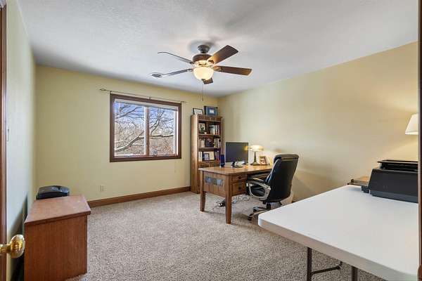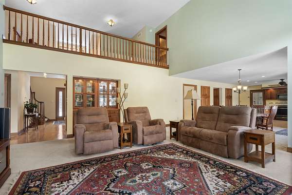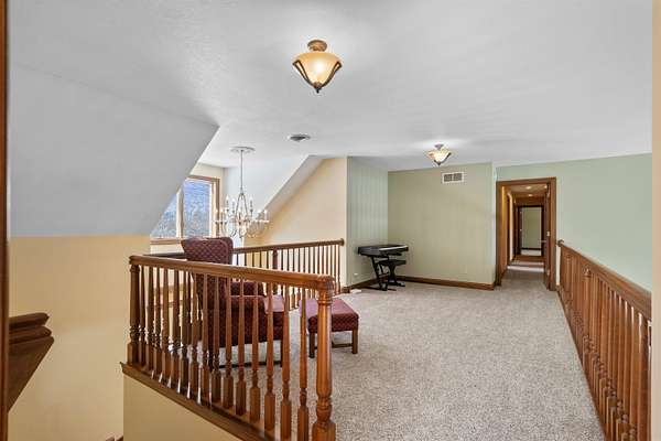 Discover the perfect harmony of comfort and nature at 110 Hidden Meadow Lane, situated on a sprawling 1.51-acre lot within the Denver school district. This impressive home offers over 5,000 square feet of thoughtful living space featuring 5 spacious bedrooms and 3.5 bathrooms, organized to provide both entertaining areas and private retreats. The main level is designed for modern living, boasting a bright open floor plan that connects the primary living areas, complemented by separate formal living and formal dining spaces for hosting special occasions. This floor is anchored by a highly coveted primary suite with an expansive en-suite bath, a expansive kitchen featuring a generous pantry, and a convenient laundry room. The second level offers a versatile retreat, housing three large bedrooms and a dedicated private office that serves as an inspiring workspace with large windows framing views of the Iowa landscape. This upper floor also features a charming balcony area, a perfect nook for a cozy reading chair and a good book, or a dedicated space for a piano and guitar to fill the home with music. The property's true versatility is found in the full walk-out basement, which functions as a complete, independent living solution. Featuring its own second kitchen and direct garage access, this lower level is perfectly suited for multi-generational living, a guest suite, or a premium entertaining hub that transitions seamlessly to the backyard. Peace of mind comes standard throughout the home thanks to significant recent investments, including the installation of brand-new, high-efficiency HVAC systems in 2024. Outdoor living reached new heights in 2025 with the addition of a massive Trex deck, providing a durable, elevated vantage point for watching the loads of local wildlife-from deer and wild turkey, to songbirds-that frequent the private, park-like acreage. Whether you are working from the sun-drenched upstairs office or enjoying the view from the new deck, every inch of this home is designed for comfort and scale. An oversized 3-car garage provides over 1,200 square feet of space for vehicles and hobbies, offering a functional lifestyle that is rarely found on the market. With its blend of modern mechanical updates and dual-living amenities, 110 Hidden Meadow Lane represents a great opportunity to own an one of a kind property in Denver.