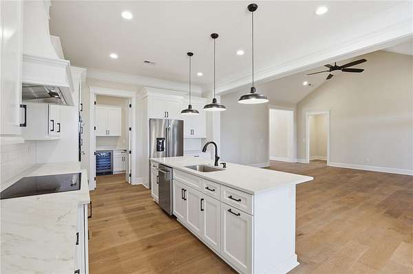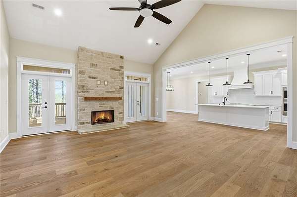 RARE opportunity to purchase a new quality built CUSTOM home in prestigious Highland Shores at Lake Keowee! This community is gated with spacious lots and a boat ramp featuring shared kayaks, fire pit, and a fishing spot. When you arrive, you will be in awe of the curb appeal this craftsman style home will have with rock and hard board exterior - sitting on a 1.68 ACRE LOT. This property has ample driveway parking and an oversized 3 car garage with storage space. Inside, you are welcomed to a spacious entryway with French doors leading to an office. The home has a living room with vaulted ceilings and rock fireplace open to the chef's kitchen with butler's pantry. The dining area has oversized windows with picturesque mountain views. This home has a split floor plan with 2 bedrooms with walk-in closets and a private jack-n-jill bathroom. Opposite side is a spacious laundry room with a sink, guest bathroom, and an owner's bedroom. When you enter the owner's bedroom, you will be in awe of the mountain views embraced by oversized windows and vaulted ceilings. The ensuite has a step-in tiled shower, garden tub, and his / her vanities. This home is minutes to Keowee Key and 2.5 miles to Keowee Town Landing public boat ramp. This neighborhood has no restriction against short term rentals. Don't miss out on this opportunity - as this home nears completion, it won't last long! Estimated completion mid January 2026.