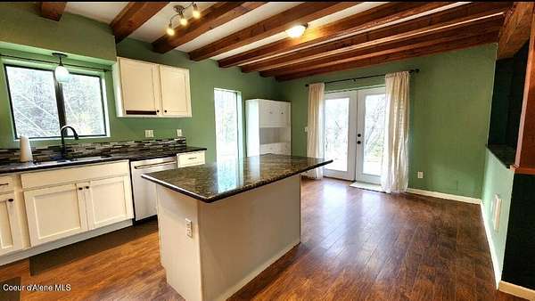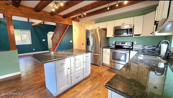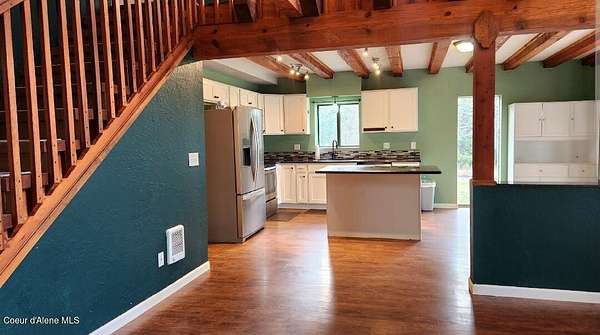 Rustic charm combines modern updates thoughout this 3 bedroom 2-bath home offering 1,884 square feet of living space. Step inside to find exposed beams and vaulted ceilings adding rustic character throughout an open living space. The home features granite countertops & stainless steel appliances including a new washer & dryer. A cozy loft provides additional space for relaxation or work. 2 main level bedrooms with a bathroom are in additon to a spacious upper level primary bedroom including a walk-in closet & large bathroom. New flooring throughout the interior. Step outside to enjoy stunning St. Joe River valley views from the large deck. The generous lot includes a 34x24 shop and 2nd detached garage, chicken coop, and fire pit area for your enjoyment. 2 RV parking spaces with hookups. Located conveniently close to town while maintaining a peaceful setting with great views. Close to the lake and the river and all the outdoor recreation the area has to offer. 2 Minutes to town!