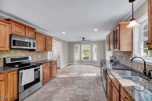 - Bookcases, Built-In Features, Ceiling Fan(s), Granite Counters, Pantry