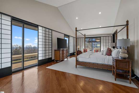 Represented by Sijia Hughes of Herlong Sotheby's International Realty, 864.551.1447. 110 Huckleberry Ridge, Greenville SC -- Paris Mountain Modern Zen Retreat Not every luxury home is built for the crowd--and that's exactly what makes 110 Huckleberry Ridge so exceptional. While this Asian-inspired estate easily hosts gatherings of over 100 guests, it sleeps only a select few, offering three private ensuite bedrooms in the main house for those who value peace, privacy, and harmony. Perched on 10 secluded acres atop Paris Mountain, this 7,400+ sq ft architectural sanctuary combines modern craftsmanship with Feng Shui design principles to create a seamless flow of energy, light, and balance. The North and South wings can be completely divided to ensure privacy between owner and guest quarters. Two distinct entrances--one for guests and one for the owner--enhance discretion, with the owner's entrance offering direct carport access into the home. Floor-to-ceiling glass windows in the kitchen, great room, and primary suite frame breathtaking mountain and garden views. A private office adjacent to the master suite overlooks the Zen garden, where a koi pond and waterfall provide serenity and focus. Even the soaking tub was placed to overlook the garden for moments of quiet renewal. Lifestyle amenities include an indoor-outdoor heated pool, spa, sauna, and a flexible gym or studio space. The 300 sq ft greenhouse fosters wellness and creativity, while a separate guest house--complete with tatami room, full bath, and private entrance--is ideal for extended family or a long-term housekeeper. Fully furnished, move-in ready, and located just 10 minutes from downtown Greenville, this estate defines modern tranquility and elevated living. Recently inspected with most repairs completed, this jewel is ready for you. 24 hour notice, VOF required up front. Contact Showing Time. #ZenLuxuryLiving #ParisMountainRetreat #FengShuiEstate #GreenvilleLuxuryHomes #SothebysInternationalRealty #ModernWellnessHome
