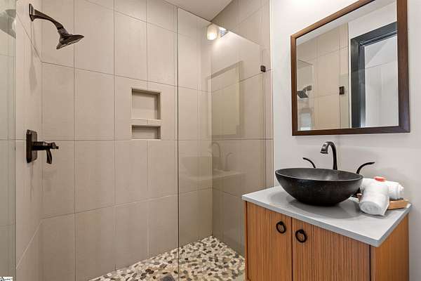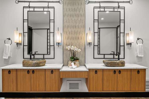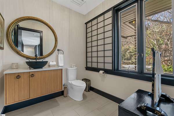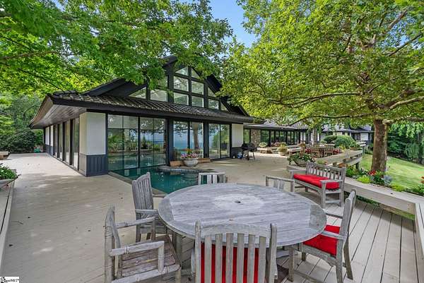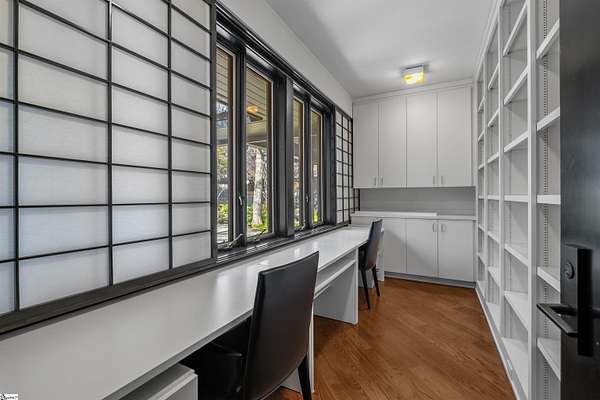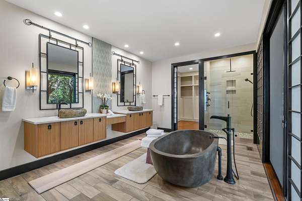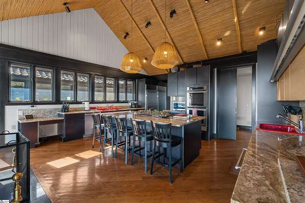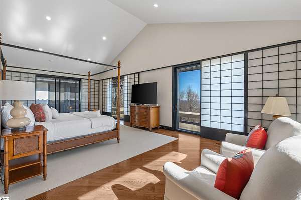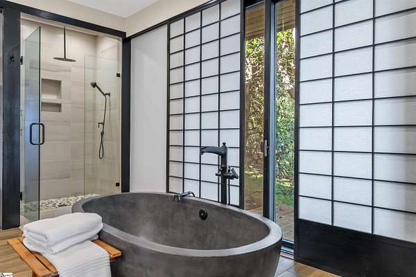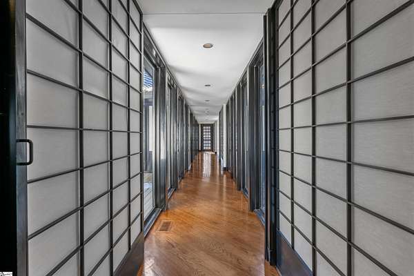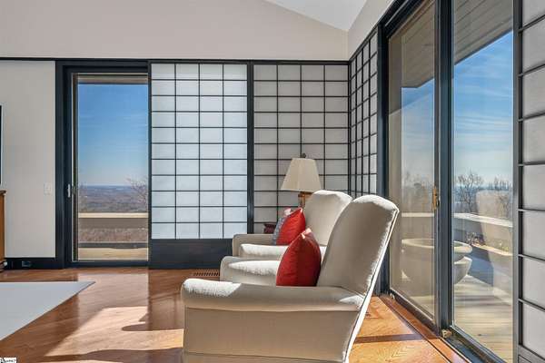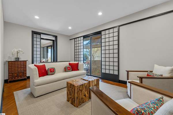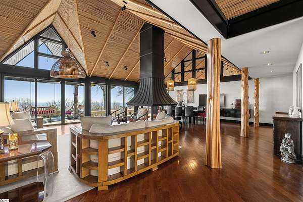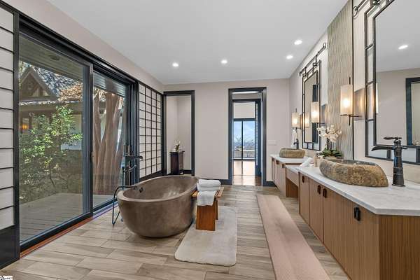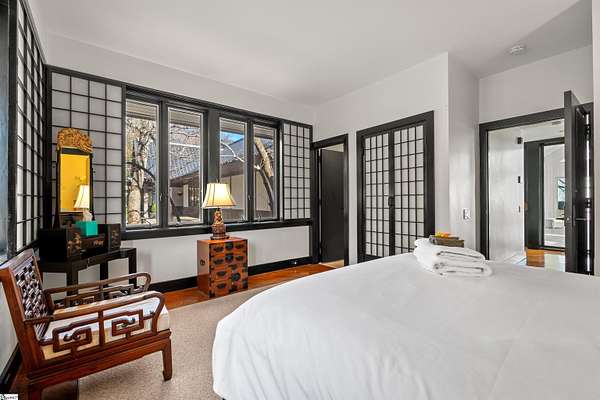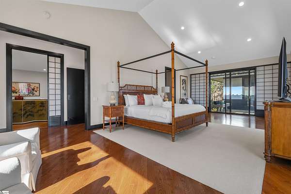 Your Paris Mountain Modern Zen Retreat awaits in Greenville SC Not every luxury home is built for the crowd--and that's exactly what makes 110 Huckleberry Ridge so exceptional. While this Asian-inspired estate easily hosts gatherings of over 100 guests, it sleeps only a select few, offering three private ensuite bedrooms in the main house for those who value peace, privacy, and harmony. Perched on 10 secluded acres atop Paris Mountain, this 7,400+ sq ft architectural sanctuary combines modern craftsmanship with Feng Shui design principles to create a seamless flow of energy, light, and balance. The North and South wings can be completely divided to ensure privacy between owner and guest quarters. Two distinct entrances--one for guests and one for the owner--enhance discretion, with the owner's entrance offering direct carport access into the home. Floor-to-ceiling glass windows in the kitchen, great room, and primary suite frame breathtaking mountain and garden views. A private office adjacent to the master suite overlooks the Zen garden, where a koi pond and waterfall provide serenity and focus. Even the soaking tub was placed to overlook the garden for moments of quiet renewal. Lifestyle amenities include an indoor-outdoor heated pool, spa, sauna, and a flexible gym or studio space. The 300 sq ft greenhouse fosters wellness and creativity, while a separate guest house--complete with tatami room, full bath, and private entrance--is ideal for extended family or a long-term housekeeper. Located just 10 minutes from downtown Greenville, this estate defines modern tranquility and elevated living. Recently inspected with most repairs completed, this jewel is ready for you. 24 hour notice, VOF required up front. Contact Showing Time.