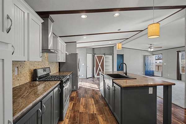 Est $1,502/moWelcome to Paradise, Texas -- a charming, close-knit community where small-town values meet modern comfort. This serene 1.5-acre treed lot offers plenty of space to stretch out, work, play, and enjoy the peaceful rural-suburban lifestyle. The double-wide home features an open floorplan and farmhouse charm, as seen in the cabinetry, a farm sink, barn door, and the beautiful stainless wall range hood. Conveniently located just 35 miles northwest of Fort Worth in Wise County, this property blends tranquility with accessibility. Complete with a storage shed, it's your chance to own a true slice of Paradise.