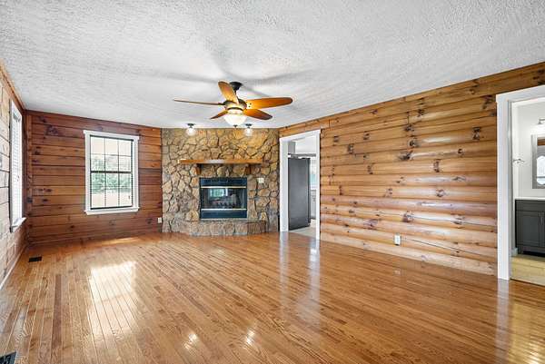 Located in the peaceful Backwoods Subdivision, 110 Jerry Smith Rd. offers a unique blend of rustic charm and functional living on over 2 acres. This log cabin-style home features a warm, inviting interior with a stunning stone fireplace, log walls, and a layout designed for both comfort and versatility. The kitchen includes stainless steel appliances and flows seamlessly into the dining and laundry areas. The main level offers a primary suite with ensuite bath, along with two additional bedrooms and a full guest bath. Upstairs, you’ll find flexible bonus spaces ideal for additional bedrooms, office, or hobby use. Outside, the property is equipped for both lifestyle and storage, featuring a detached garage with an insulated cold room, carport, and ample space for ATVs, equipment, or animals. Assumable mortgage opportunity may be available—contact agent for details. Vacant and easy to show—schedule your private tour today.