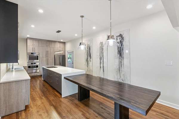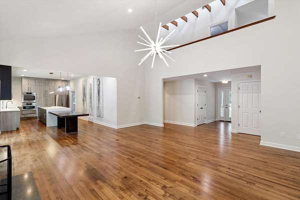Tucked away on 5+ wooded acres in Big Bell Estates, this 4BR/4BA home blends privacy, acreage, and luxury updates in one of Hickory Withe's most desirable communities. Residents enjoy access to a 25-acre neighborhood lake for fishing and recreation. Offering 3,800 sq ft with over $300,000 in updates, including a $100K custom kitchen by Leslie Murphy of Murphy Maude Interiors with Bosch appliances, quartz counters, a separate refrigerator, and a stand-alone freezer. Three bedrooms have private full baths. Other upgrades include a new roof, new windows, fresh paint, refinished hardwood floors, smooth ceilings, new carpet, and four new sliding doors. Relax on the front porch swing or enjoy wildlife from the back deck. Quiet, private, and move-in ready.