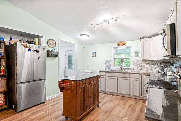 Welcome to your new sanctuary in the woods. Home is sitting on 7 acres with not one, but TWO creeks flowing through it! Over the creek and through the woods you will find a pasture, a small barn, a stocked fish pond, and a hill to overlook it all. Enjoy sitting on either porches and listening to the abundance of wildlife and the creek. Home comes with stainless steel appliances and a farmhouse kitchen sink. There are also three out buildings- one has the beginnings of electric ran to it, wouldn't take much to finish. Welcome home!
