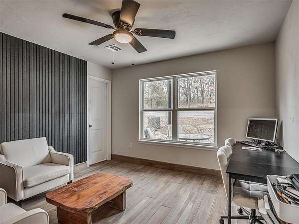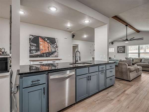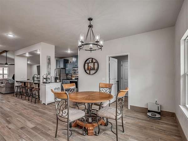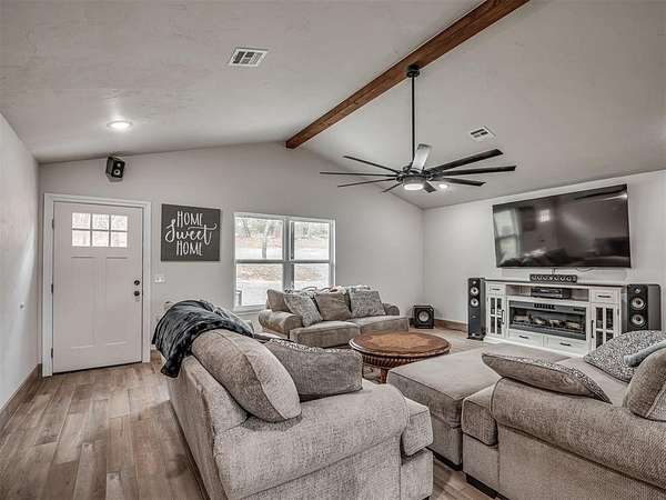 Welcome to this inviting 3-bed, 2-bath home set on a little more than 5 acres, offering the perfect blend of comfort, privacy, and modern country living. Built with a durable wood-frame structure, metal siding, and a metal roof, this property delivers long-lasting quality and low-maintenance peace of mind. Inside, the home features ceramic wood-look flooring throughout, creating a warm and cohesive feel in every room. The spacious living area includes can lighting and a large ceiling fan, making it an ideal place to relax or entertain. The kitchen is designed for both function and style, offering a generous island with bar seating and a walk-in pantry for excellent storage. All bedrooms include walk-in closets and ceiling fans, while the main bathroom is finished with ceramic tile for a clean, modern touch. An attached two-car garage adds everyday convenience and additional storage options. Outside, the property shines with a terraced backyard, providing visual interest, improved usability, and a great foundation for gardening or outdoor living spaces. The wide-open acreage offers endless possibilities - from livestock to recreation to simply enjoying the peaceful Tecumseh surroundings. This property offers the space you want with the comfort you need in a serene rural setting.